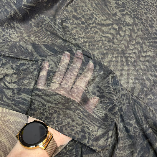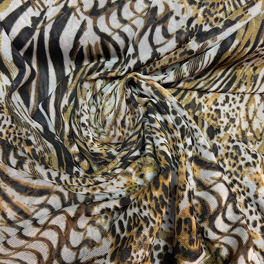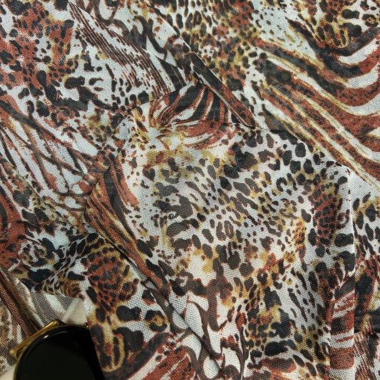 Mesh - Dyreprint i rødlig, brun og beige farver