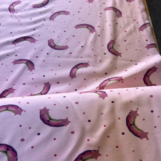 Regnbuer på lyserød baggrund - Bomuldsjersey