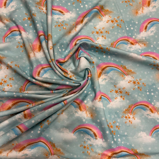 Regnbuer og skyer på blå himmel - Bomuldsjersey