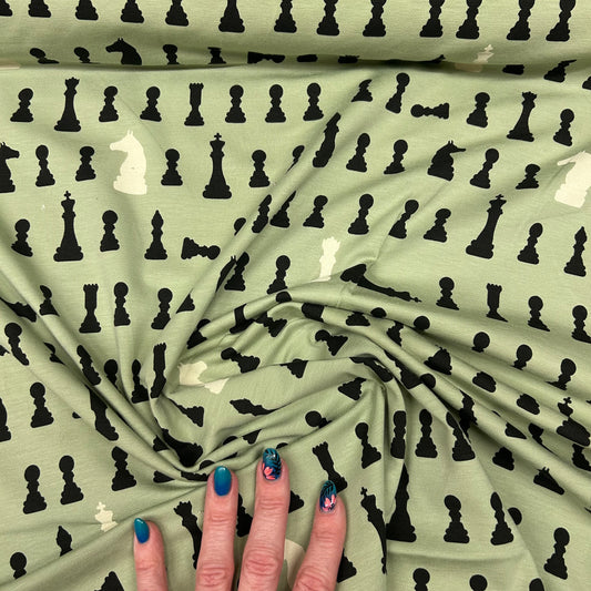 Skakbrikker på lysegrøn baggrund - Bomuldsjersey