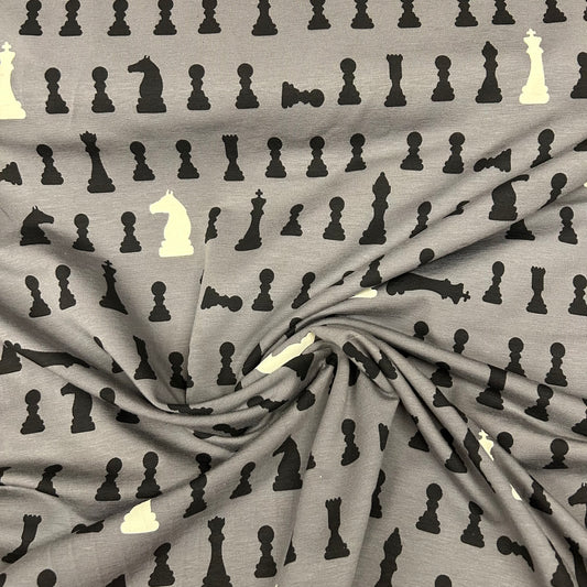 Skakbrikker på grå baggrund - Bomuldsjersey