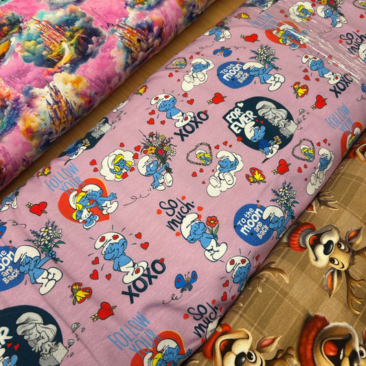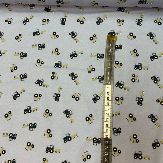 Små traktor på babyblå baggrund - Bomuldsjersey