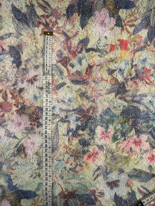 Smukt print på lys hulmønstret baggrund - Polyester med stræk