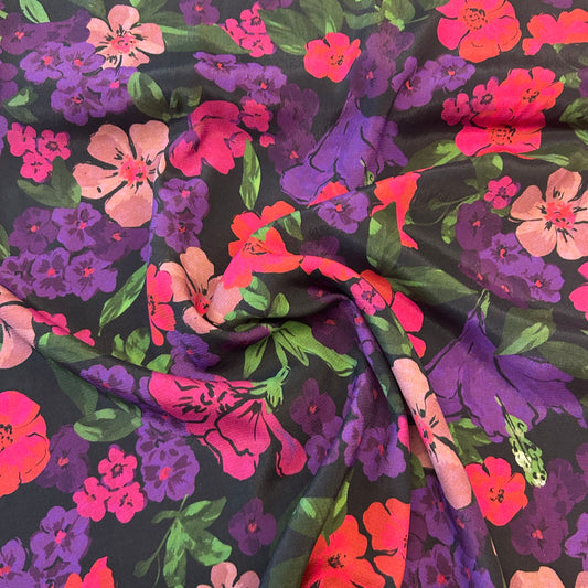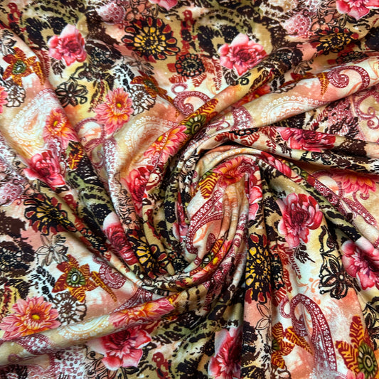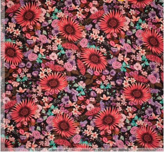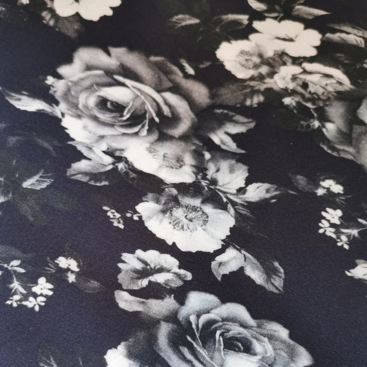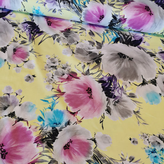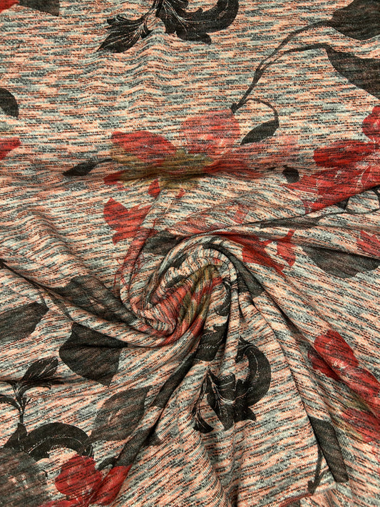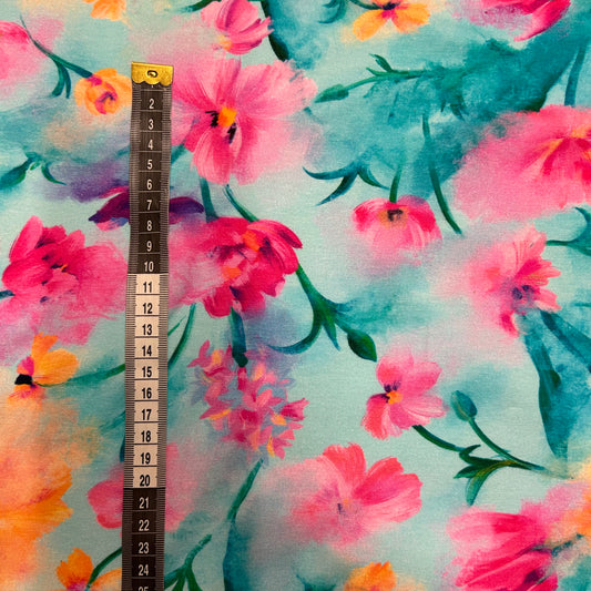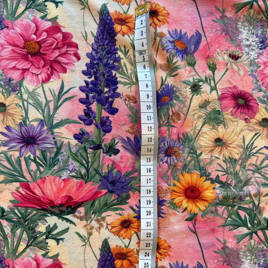 Blomster på lyserød meleret baggrund - let strik viskoseblanding