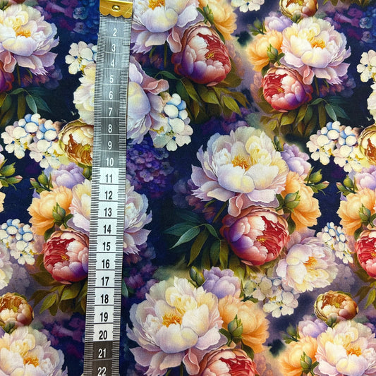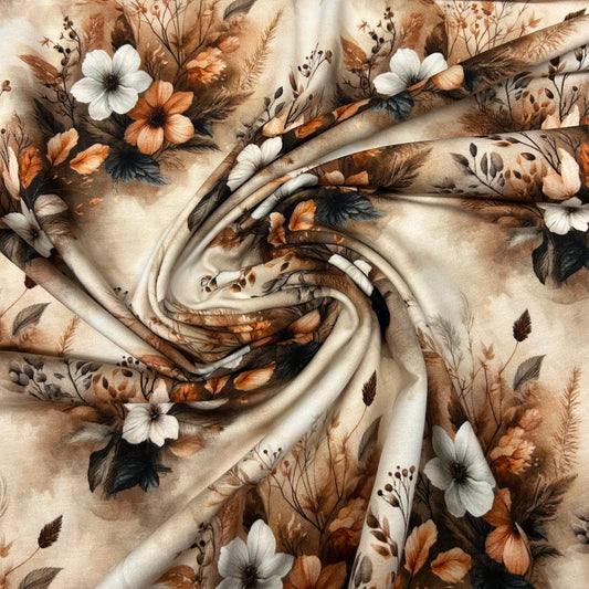 Blomster og korn på lysbaggrund med mønster - Bomuldsjersey