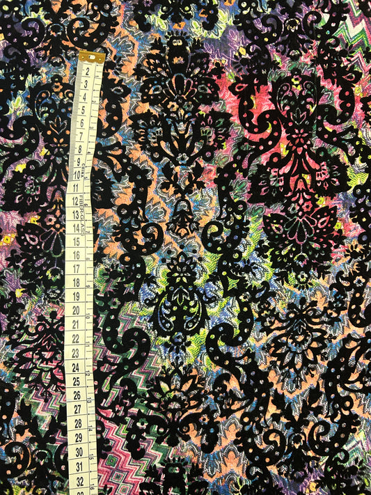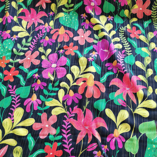 Farverige blomster og sommerfugle med paisley/spunk og elefant motiv - Bomuldsjersey