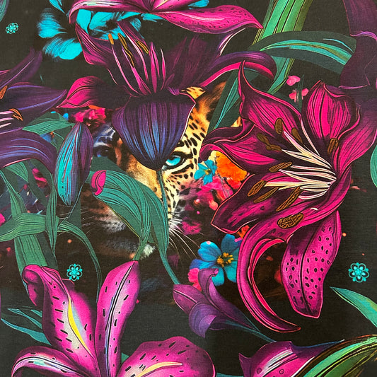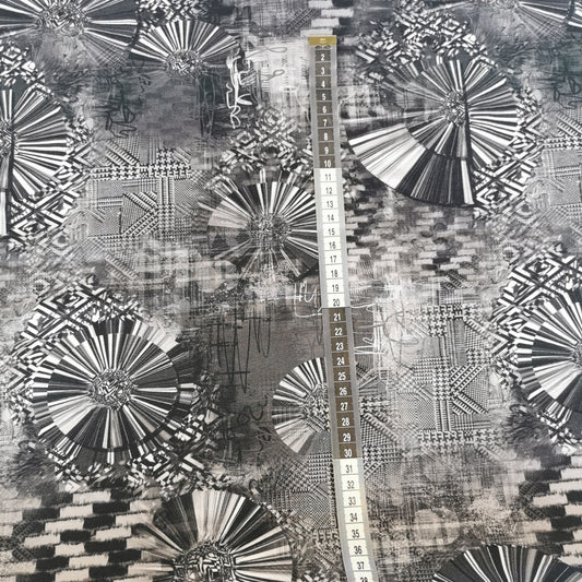 Gråt mønster i cirkler og tern - Bomuldsjersey