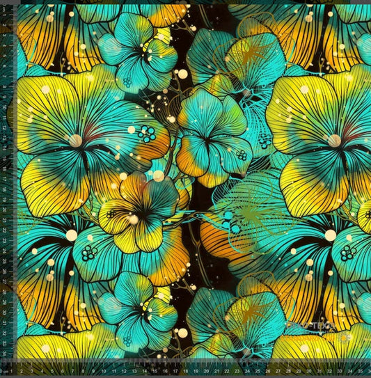 Guld og sølv mønster på sort baggrund - Bomuldsjersey