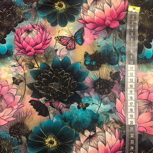 Blomster og sommerfugle - Bomuldsjersey