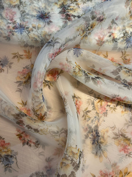 Smukt blomster print på lys baggrund - 100% Polyester