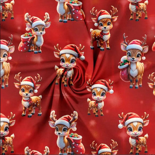 Rensdyr på rød baggrund - Bomuldsjersey