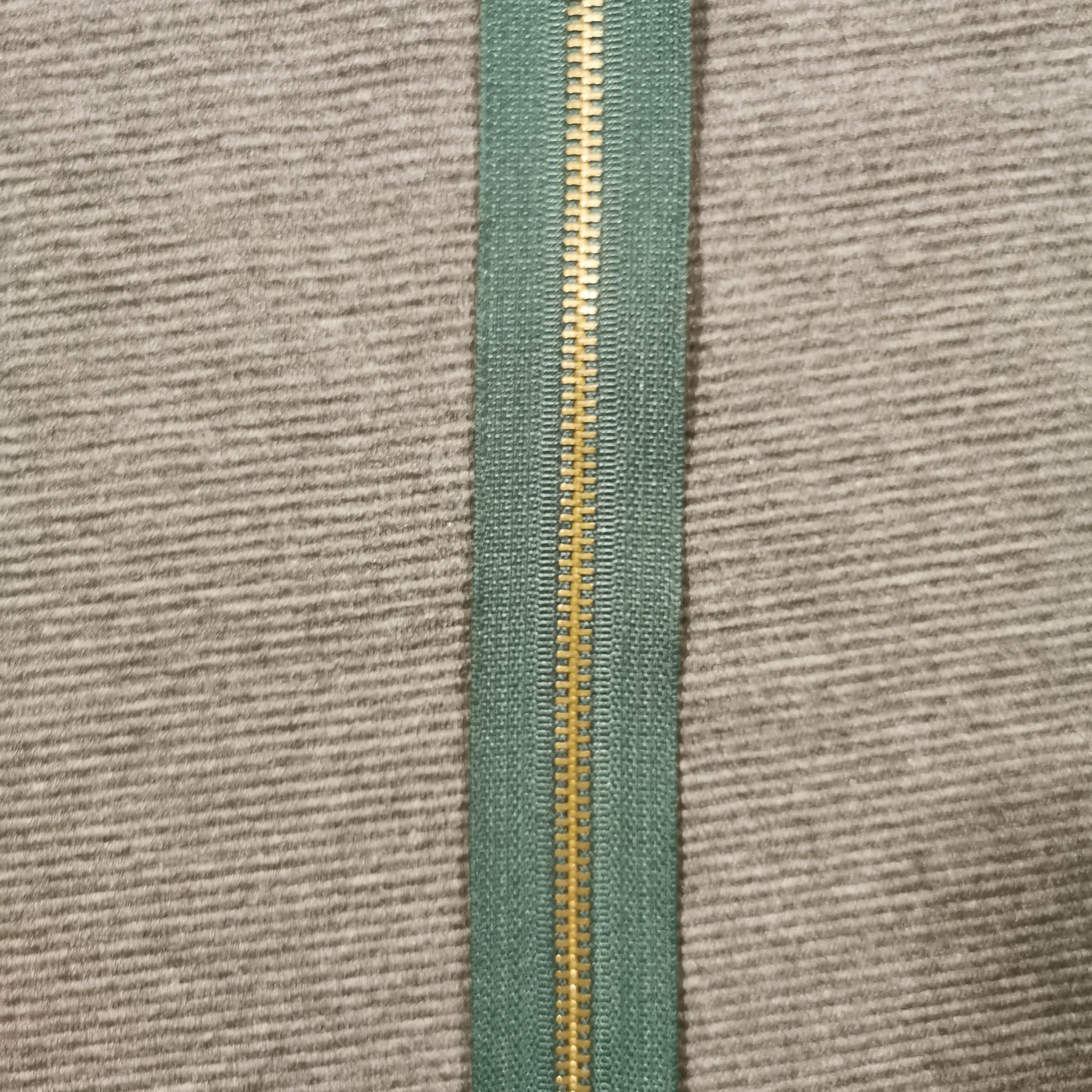 Farven kan drille lidt på billedet, men lynlåsen er grøn ensfarvet hele vejen.