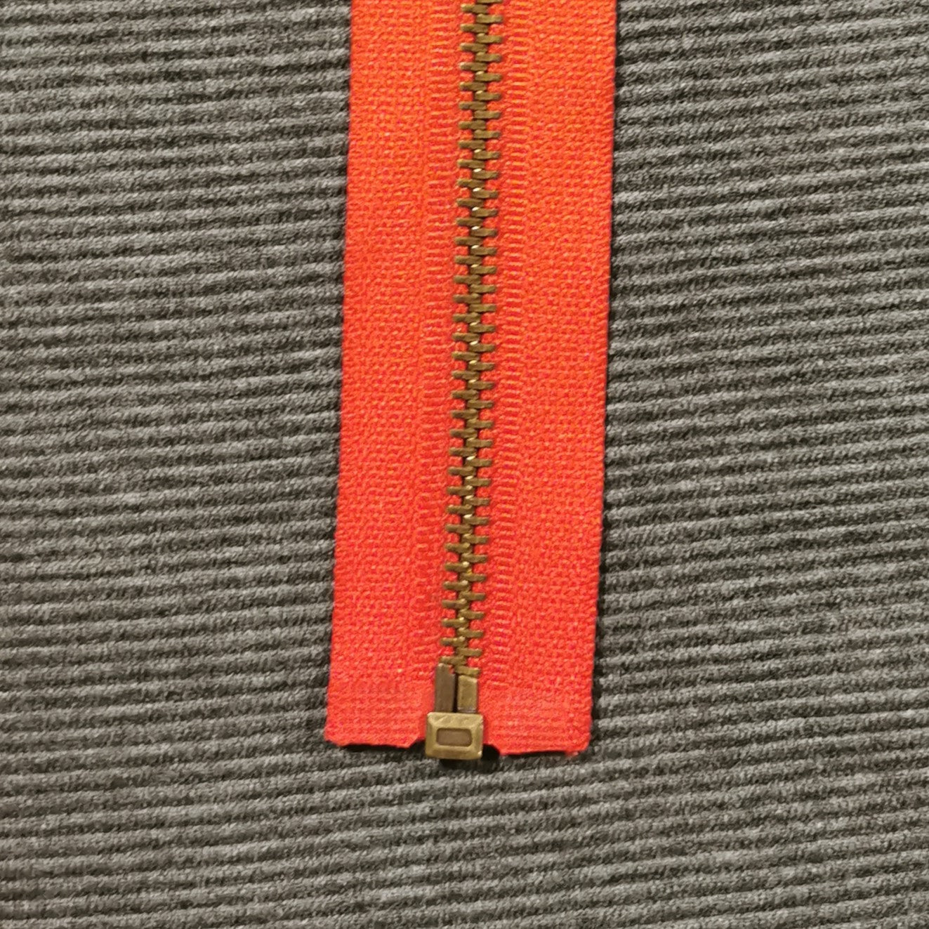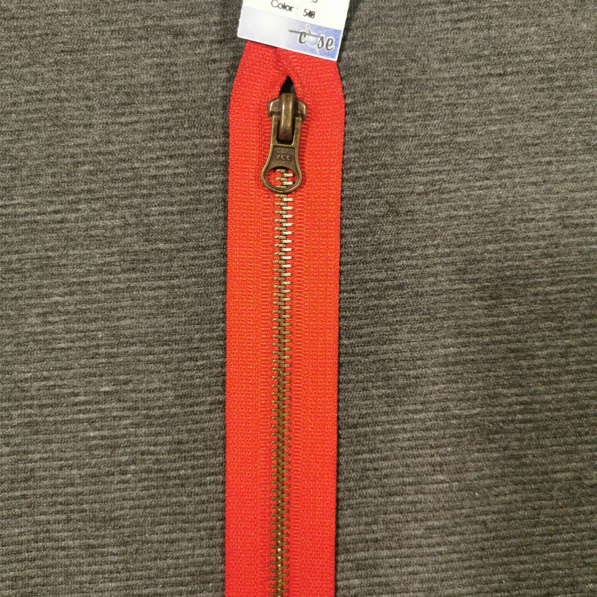 Farven kan drille lidt på billedet, men lynlåsen er rød ensfarvet hele vejen.