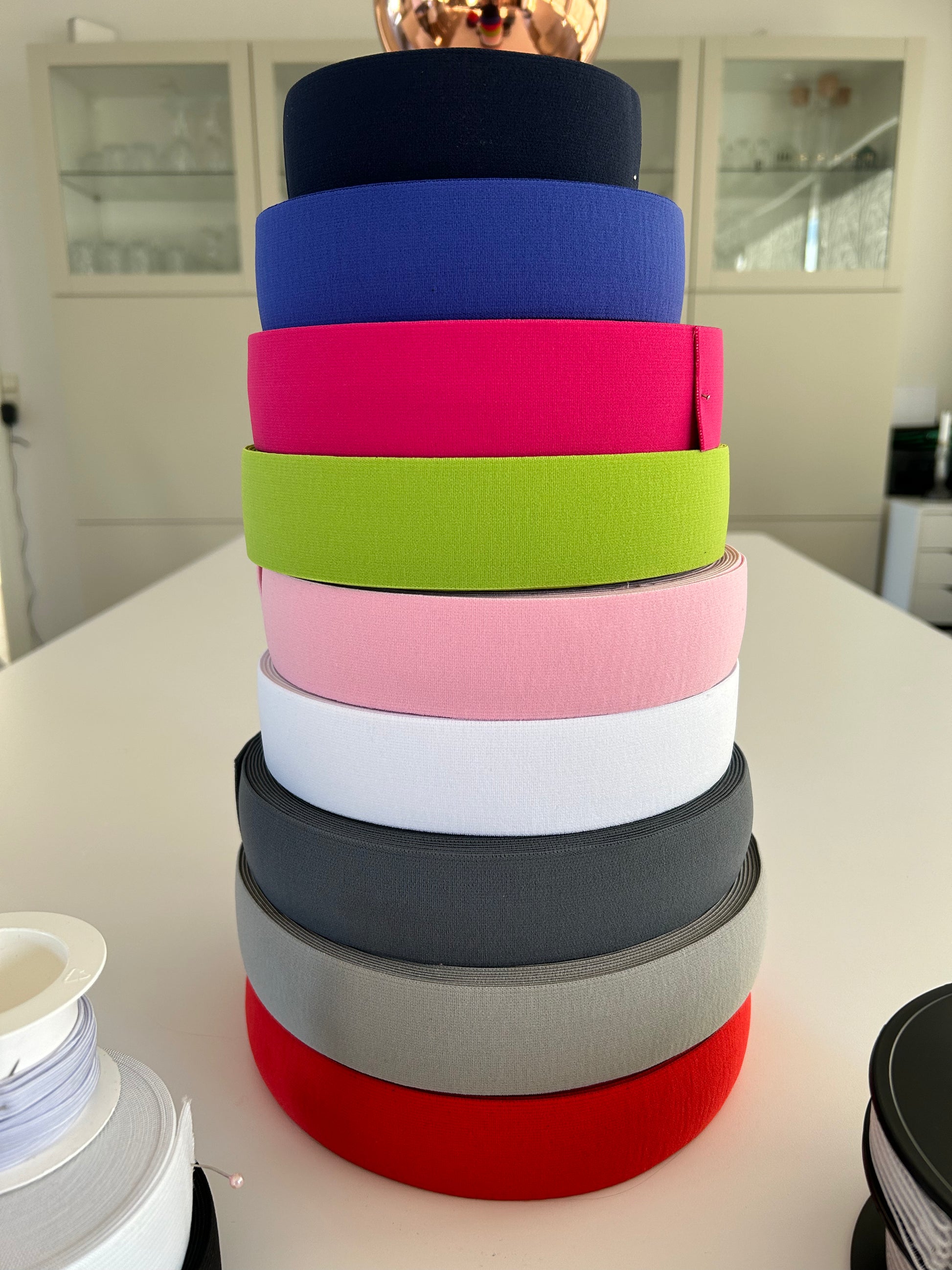 Elastik der både kan bruges til, at stå råt på eksempelvis bokseshorts, men også inde i bukselinningen på leggins.