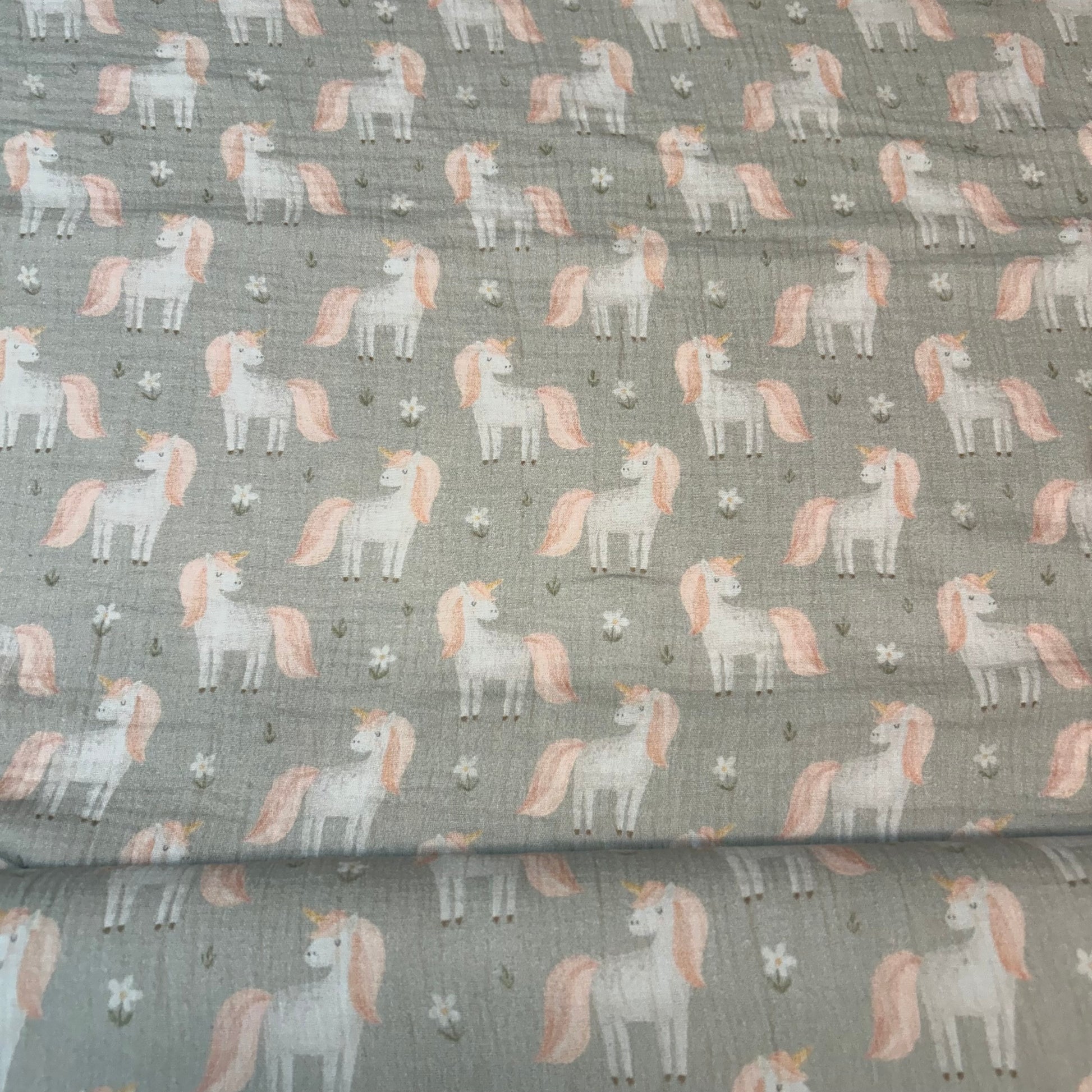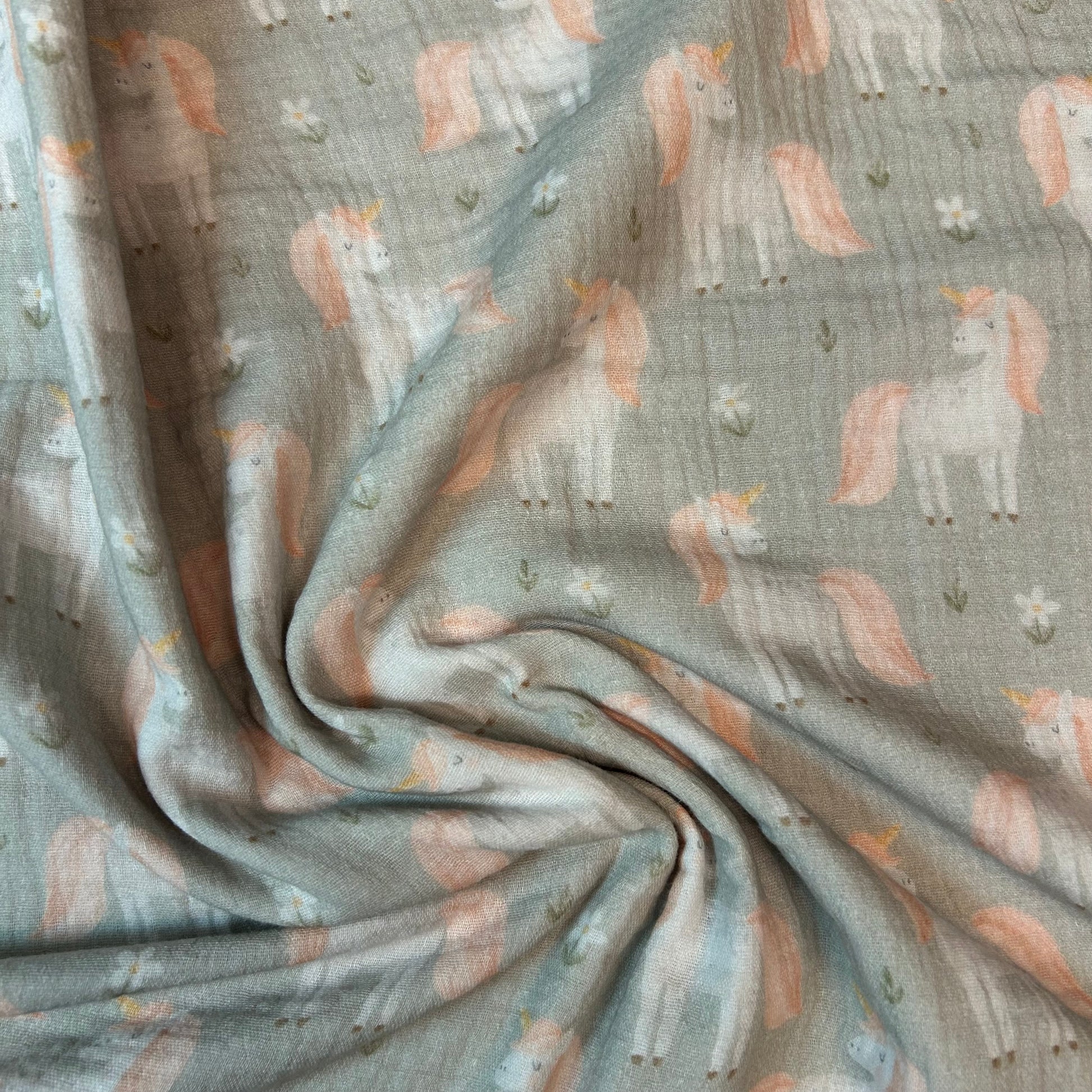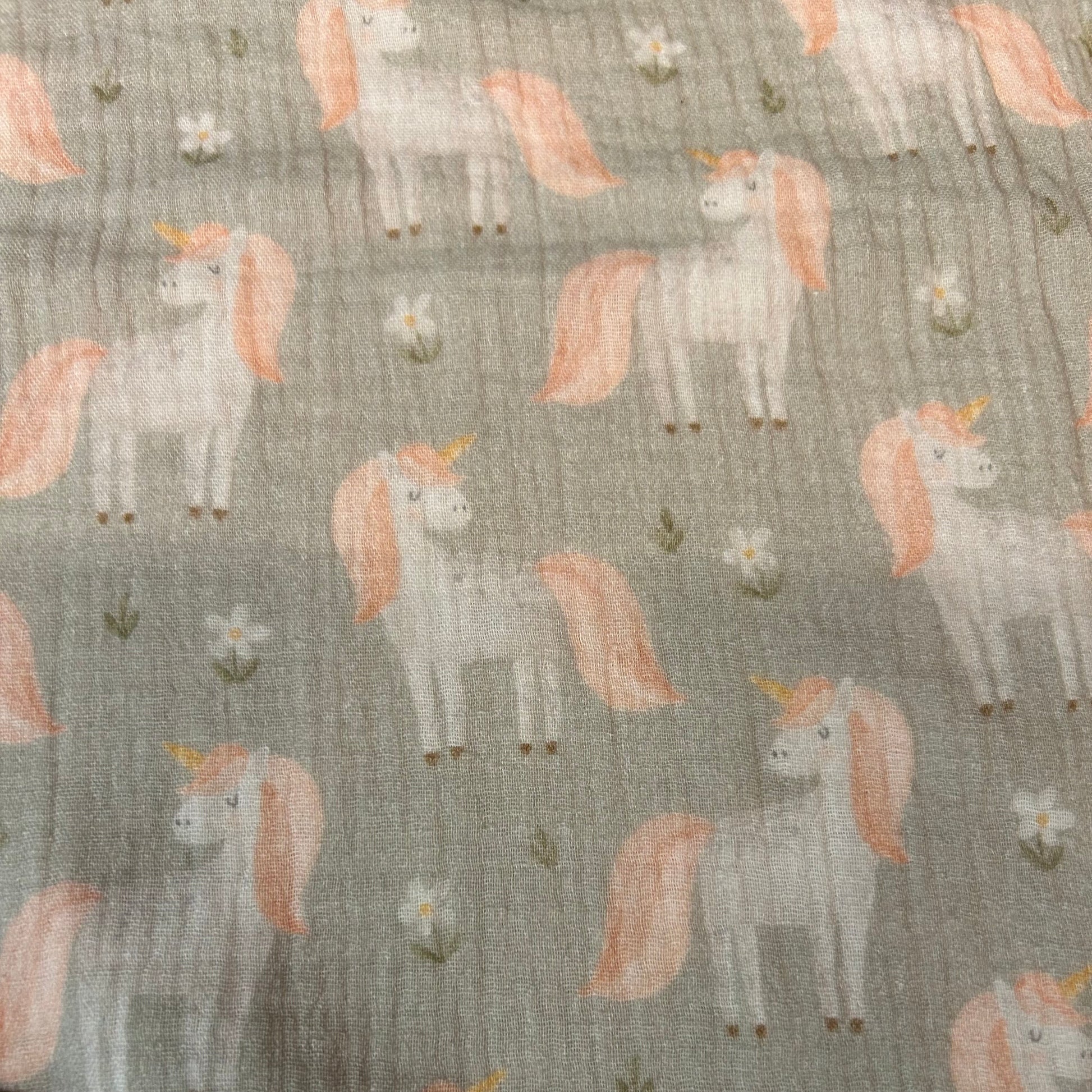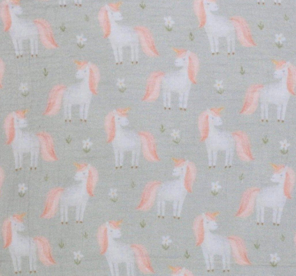 Enhjørninge på støvet grøn baggrund - Musselin