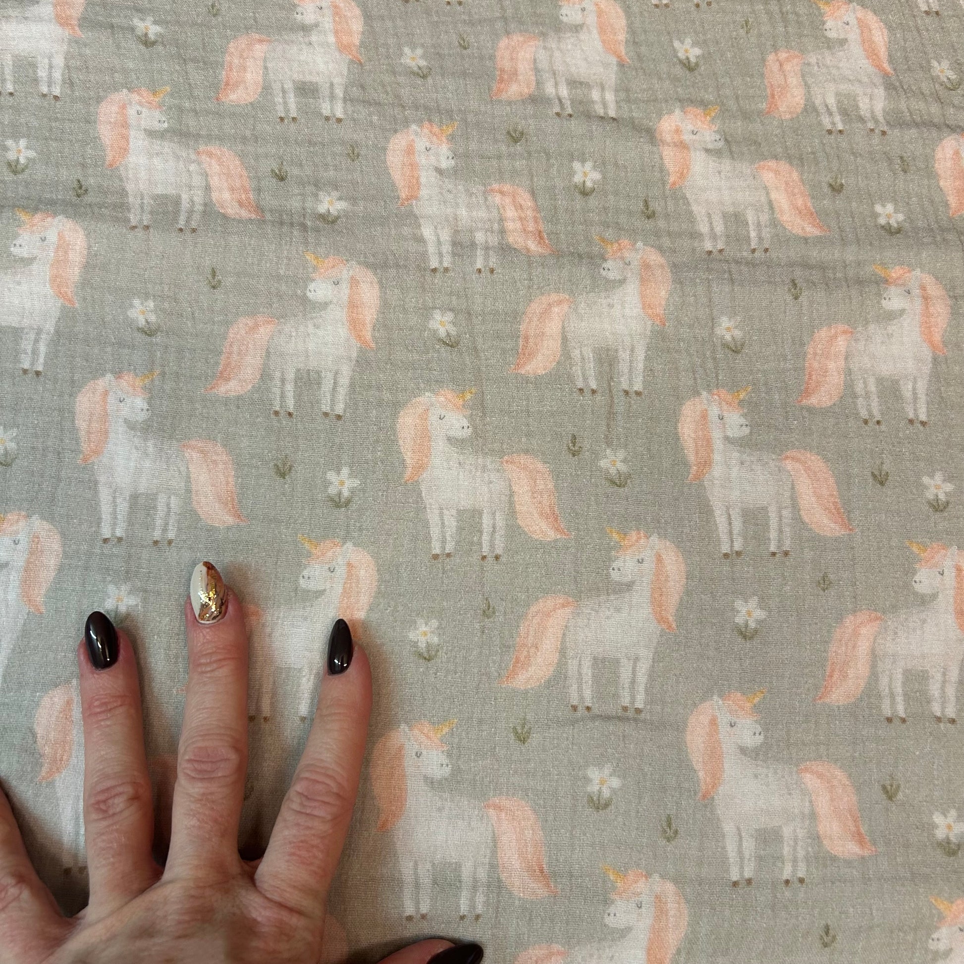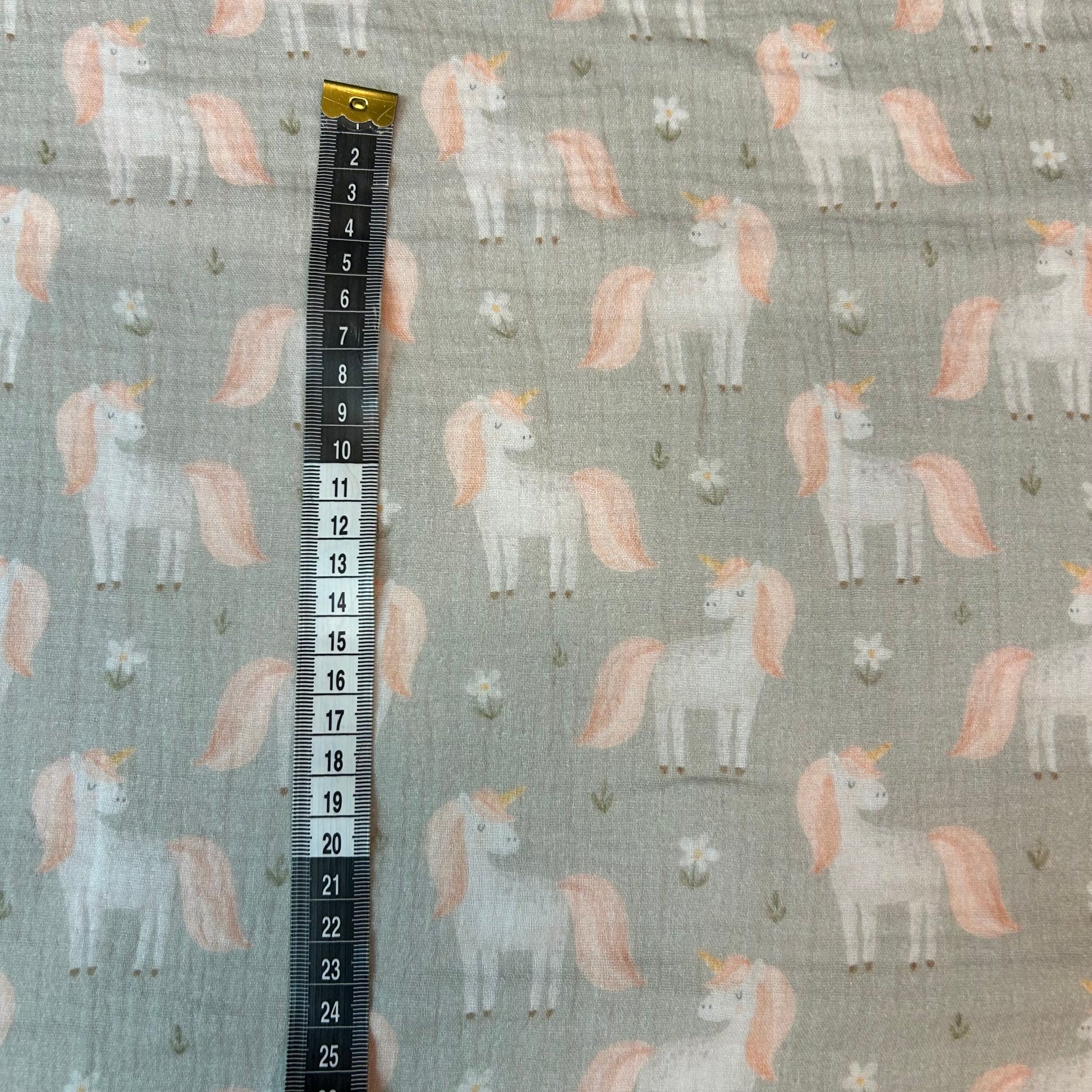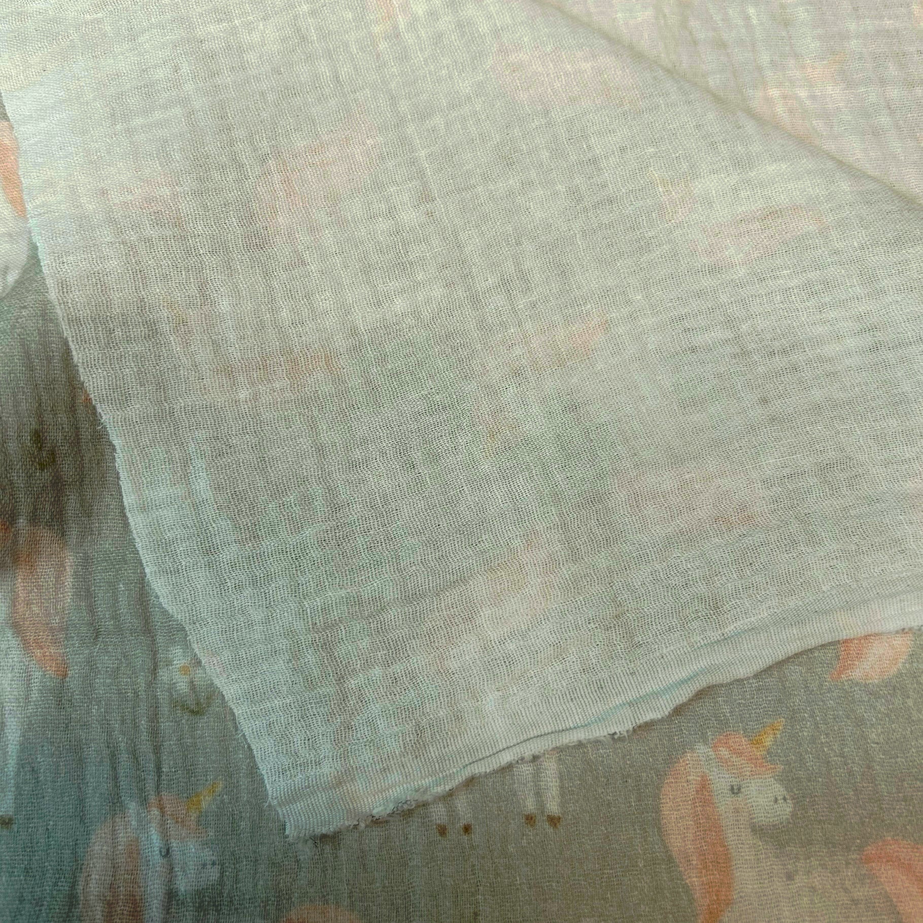 Enhjørninge på støvet grøn baggrund - Musselin