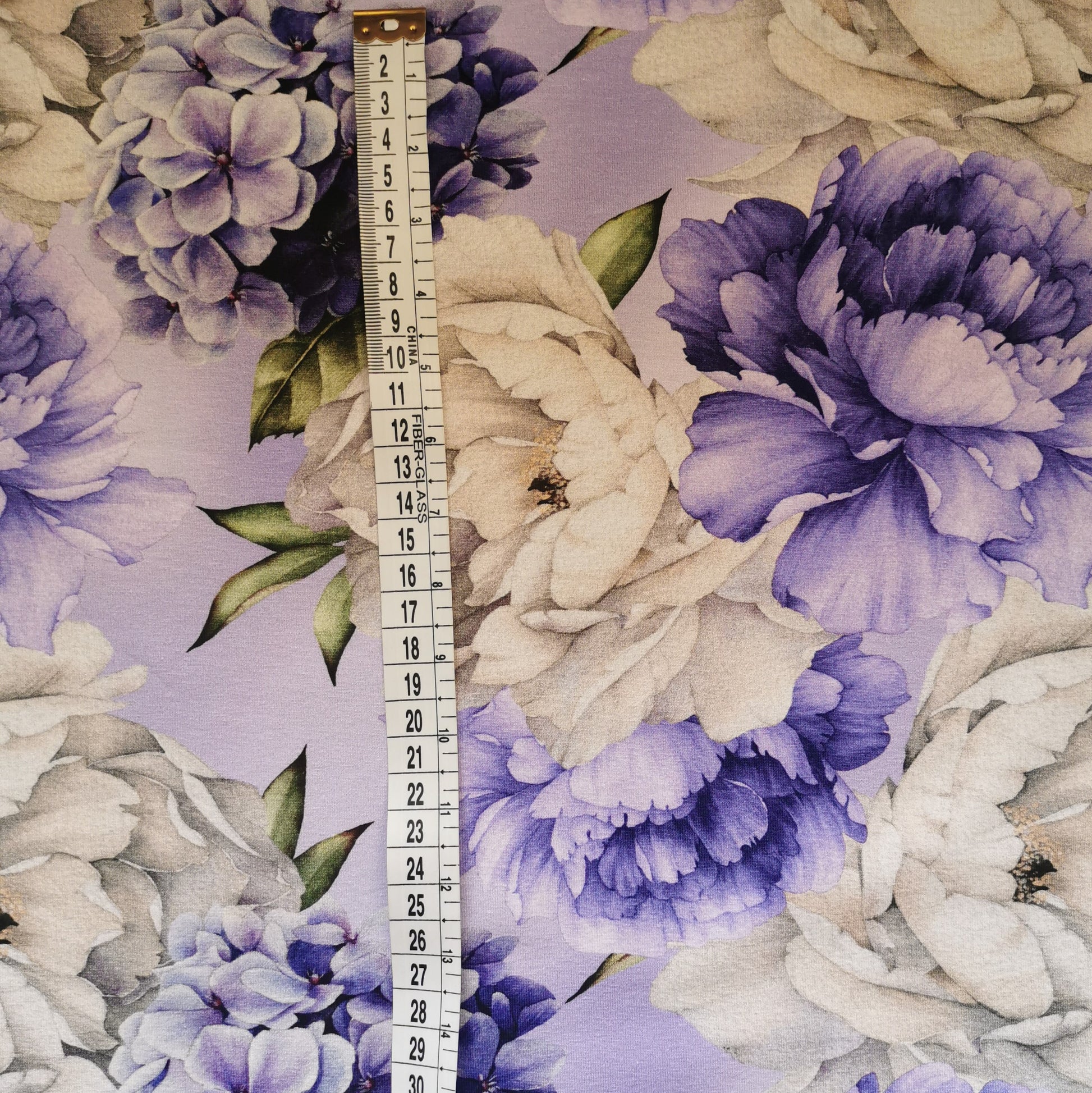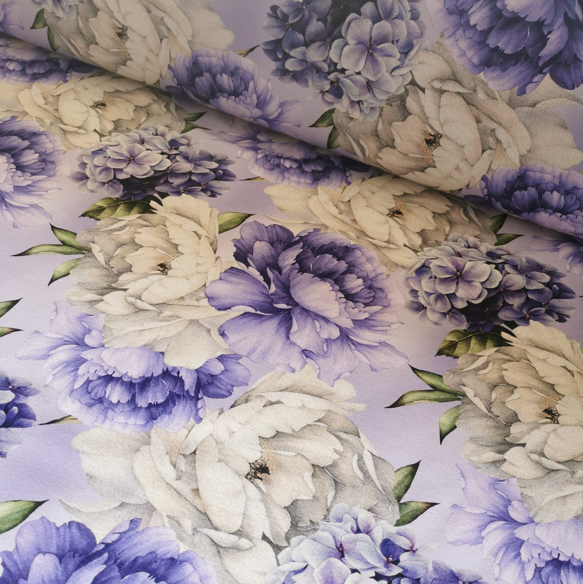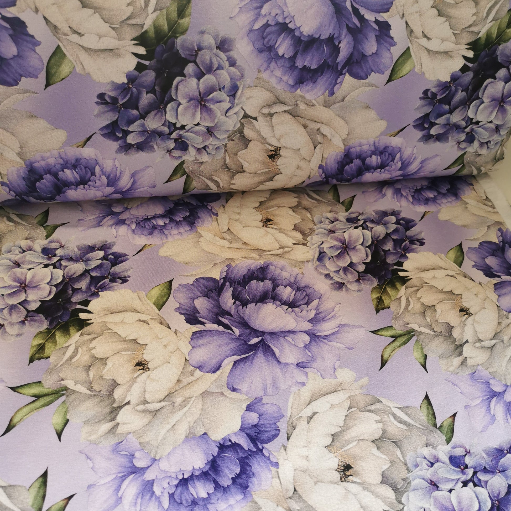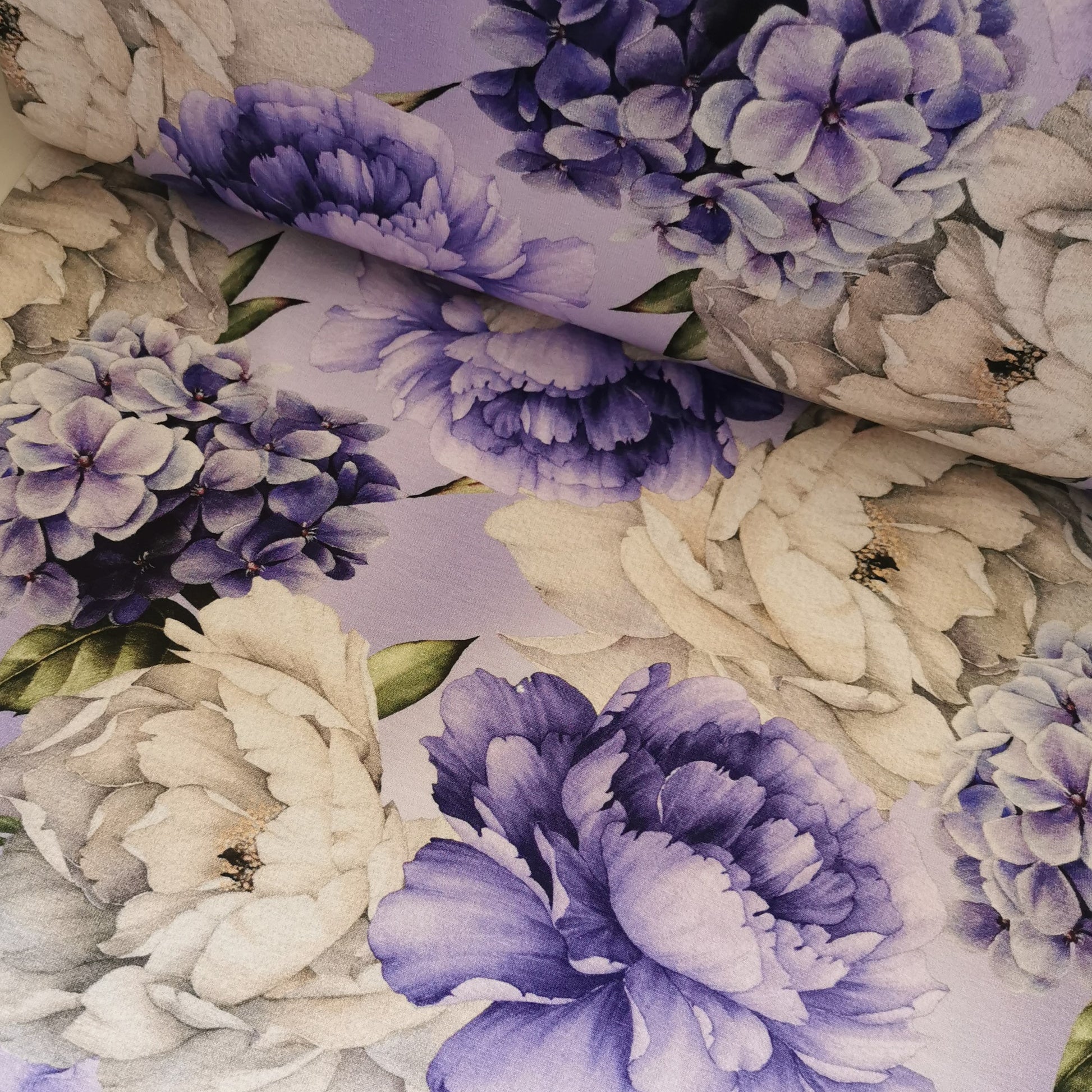Violet og hvide blomster - Bomuldsjersey