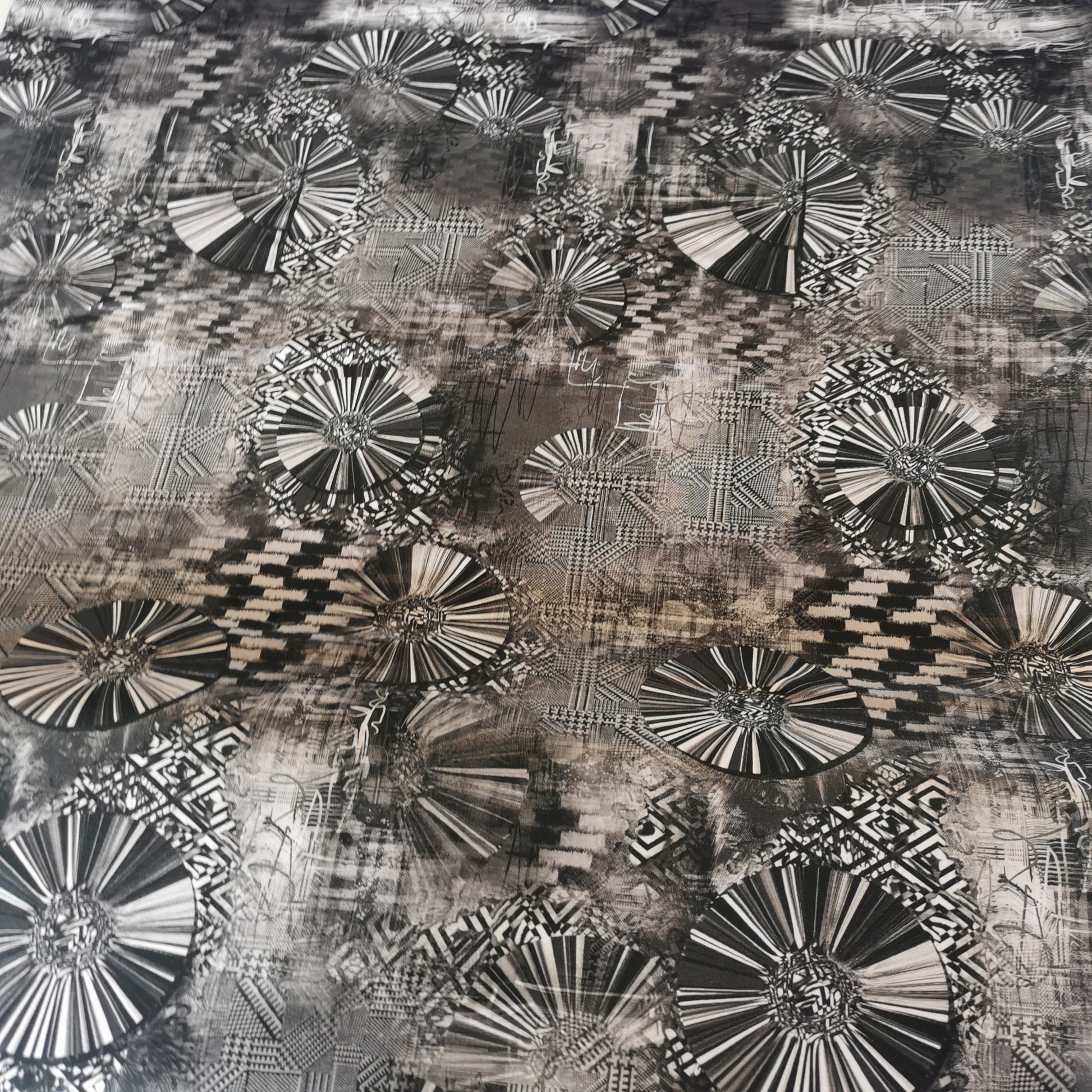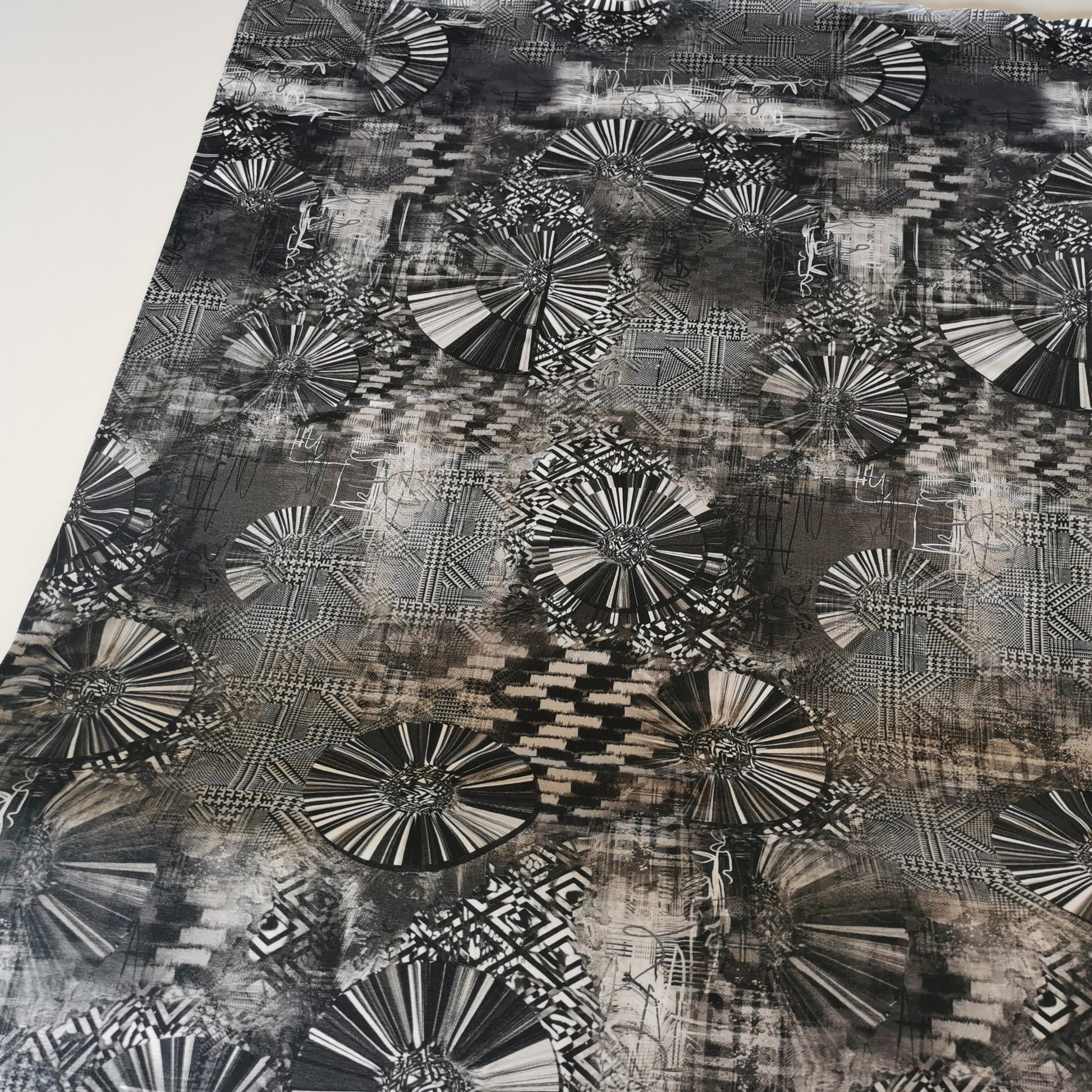 Gråt mønster i cirkler og tern - Bomuldsjersey