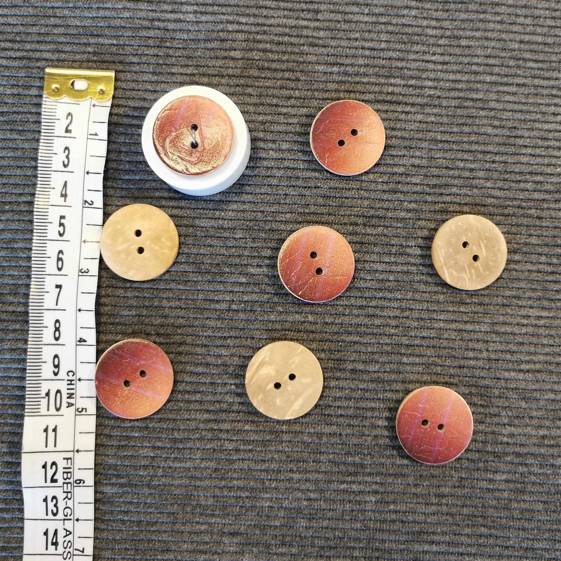 Gylden knap med lilla svage striber - 2 huller