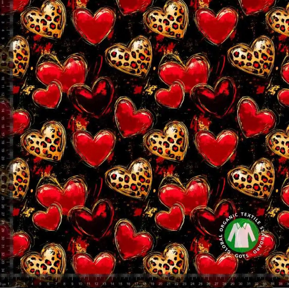 Hjerter i leopard og rød - Bomuldsjersey
