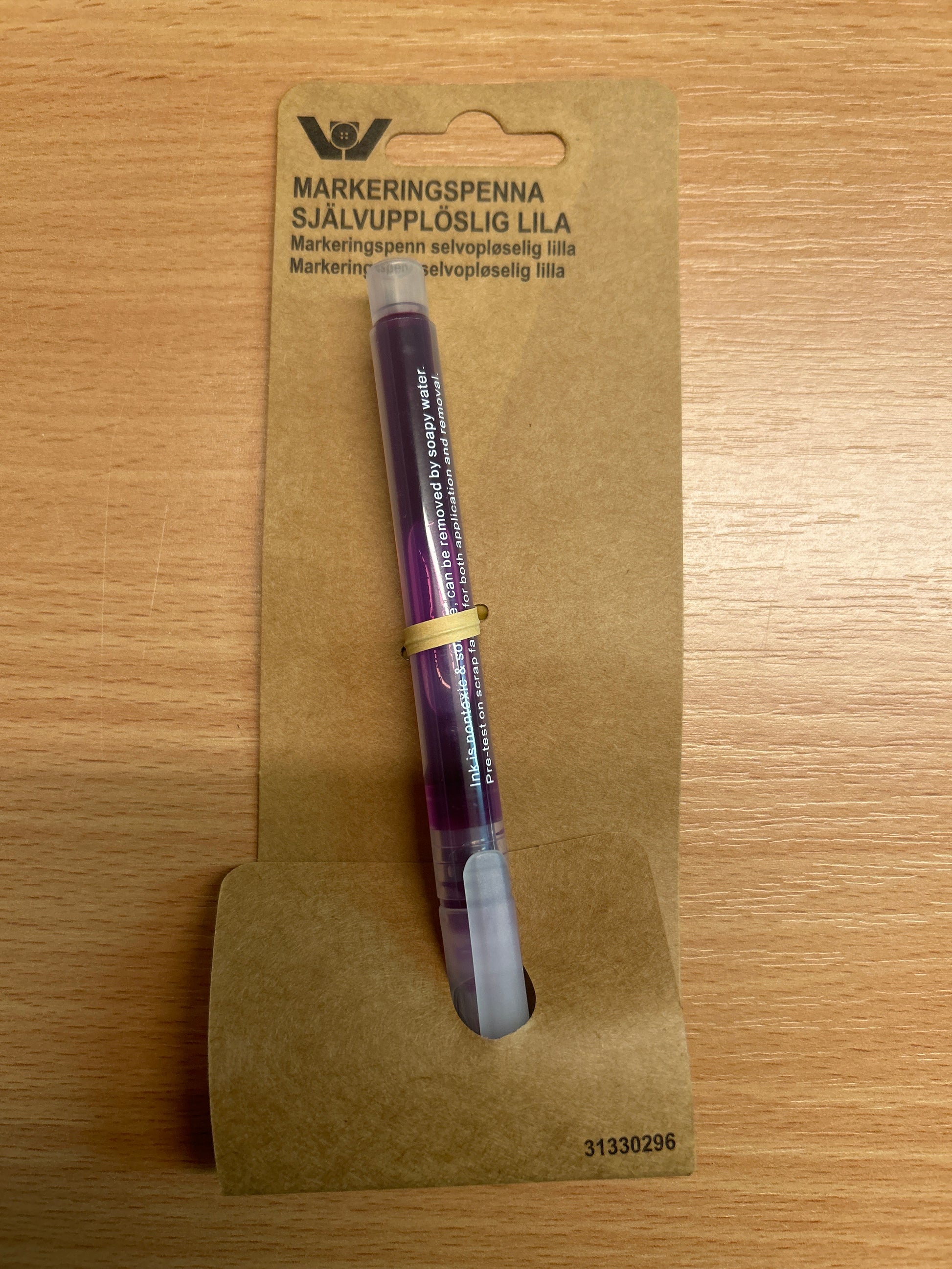 Markeringstusch i lilla som selv opløser inden 48 timer.