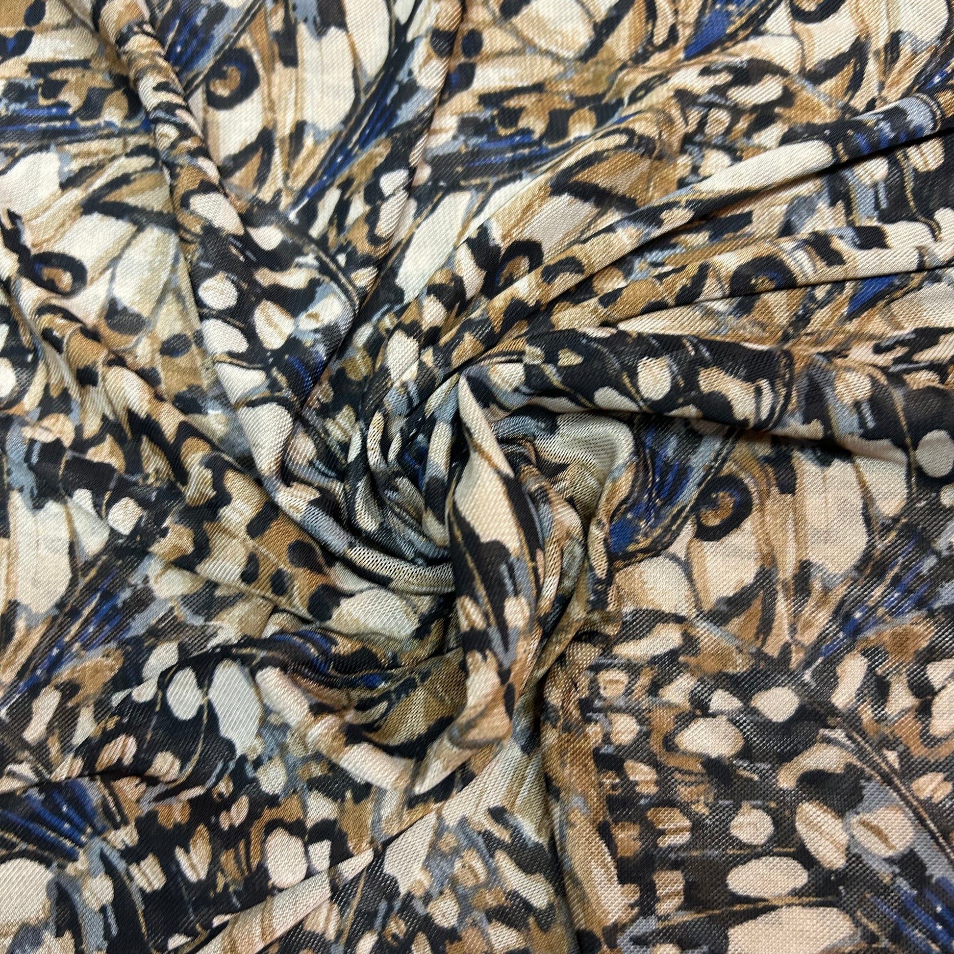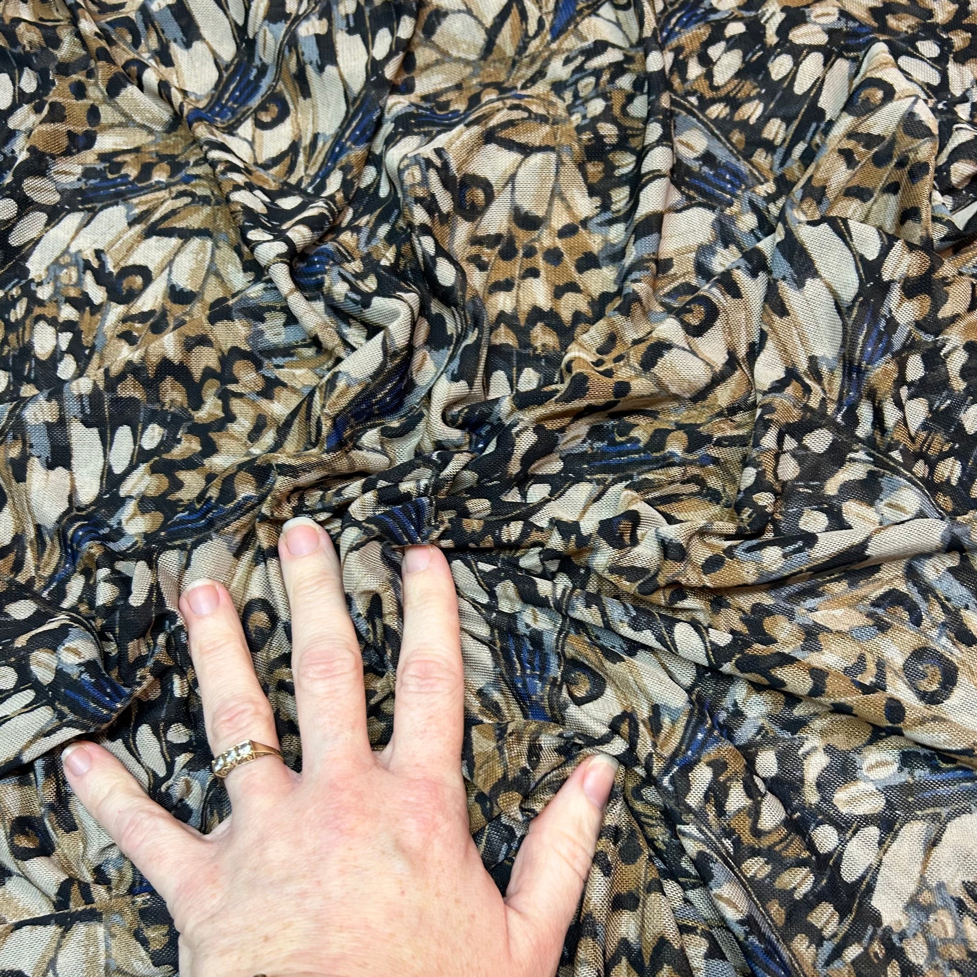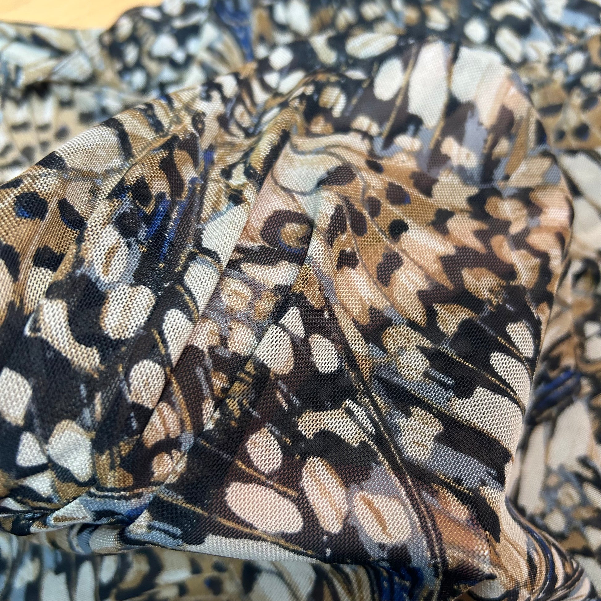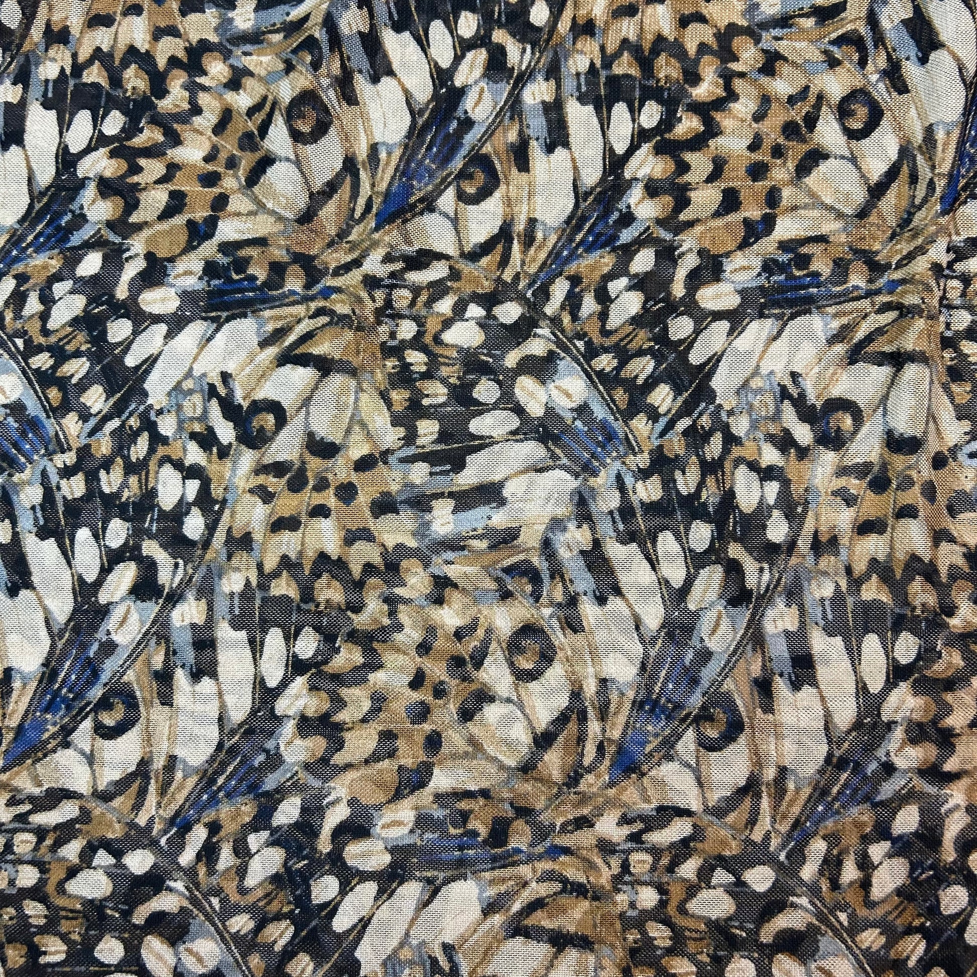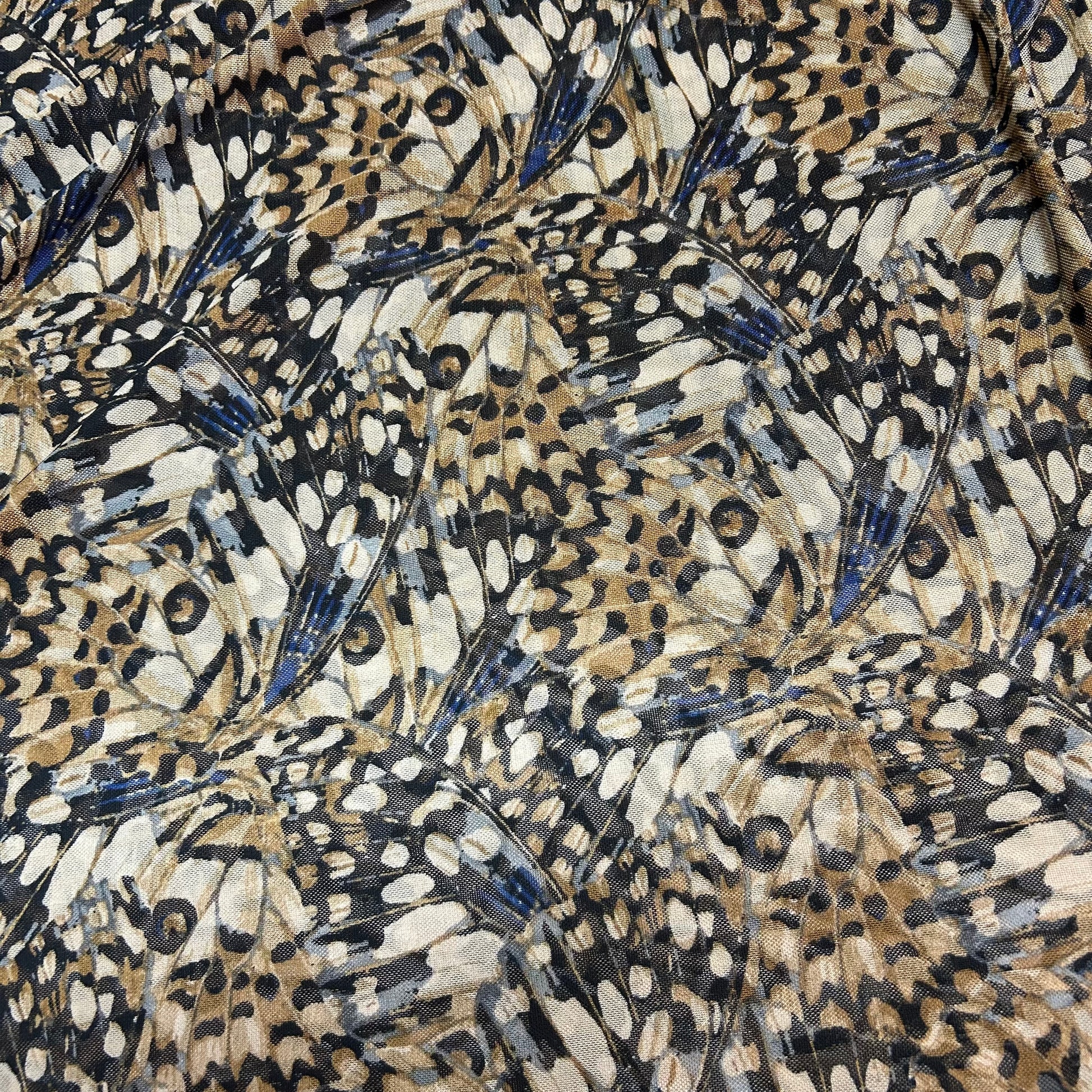 Mesh - Fjer mønster i beige og sorte farver med blå effekt
