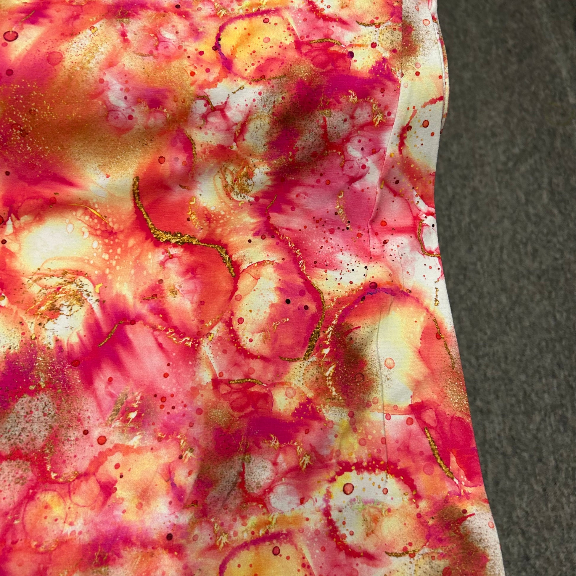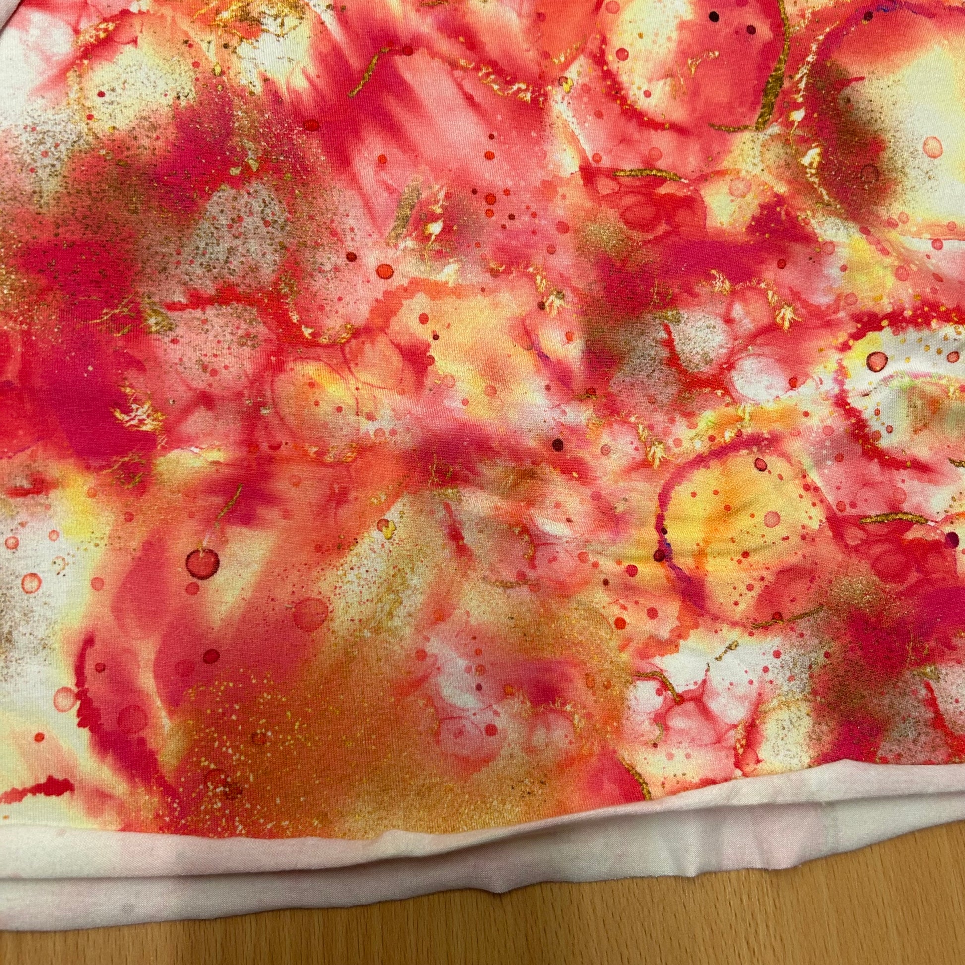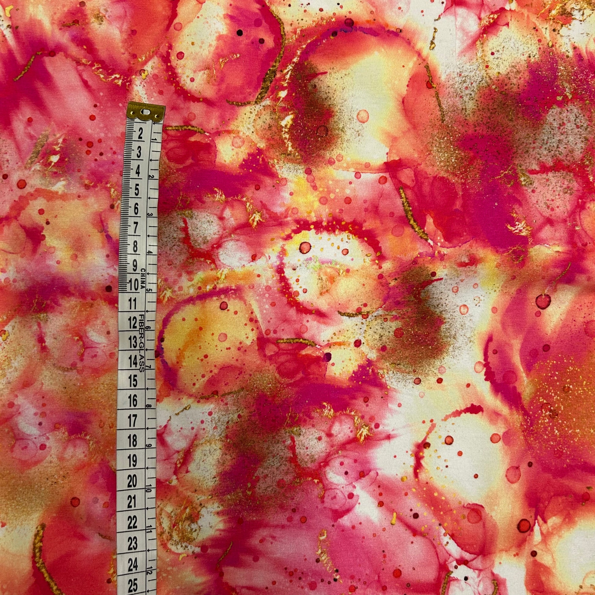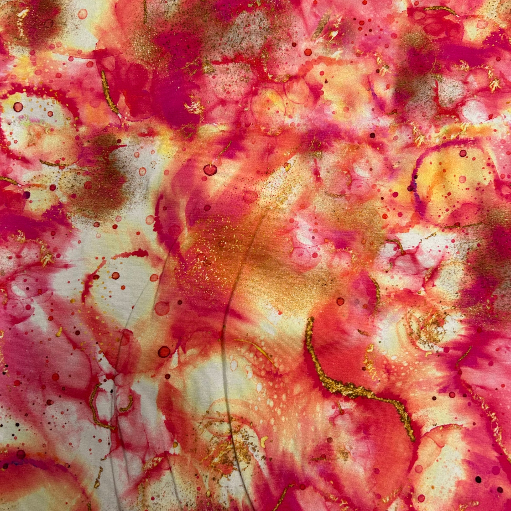 Oliemaling i lyserøde og guld farver - Bomuldsjersey