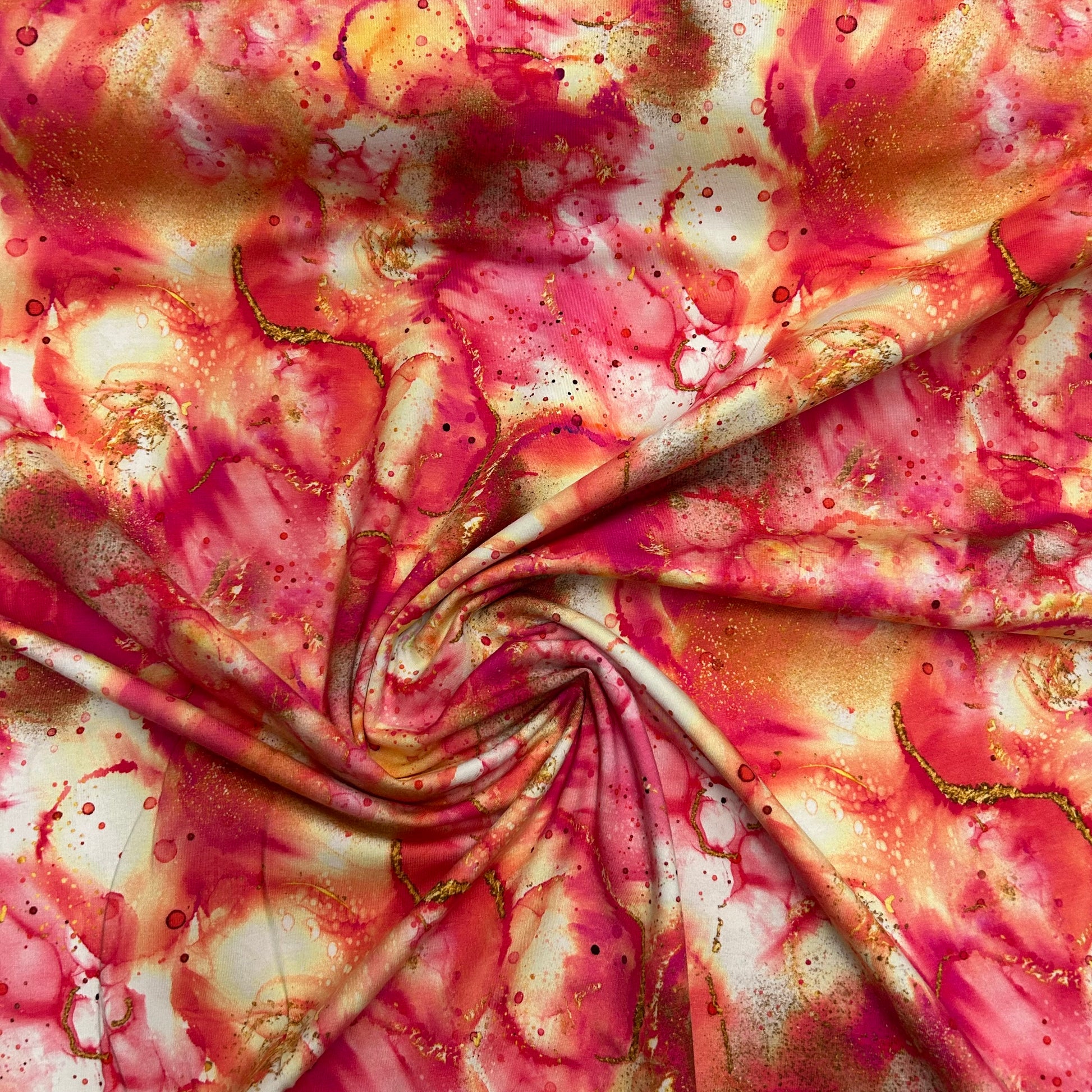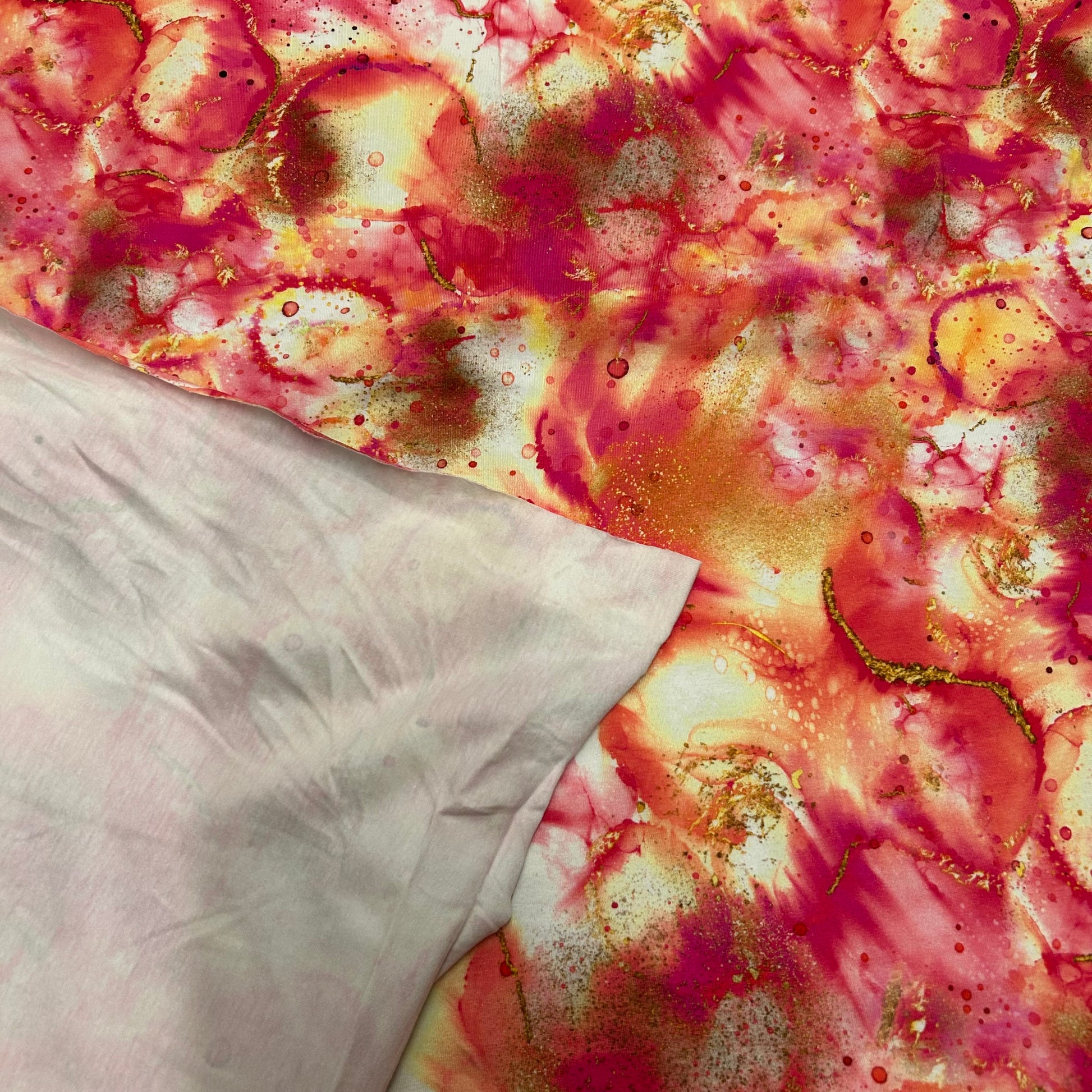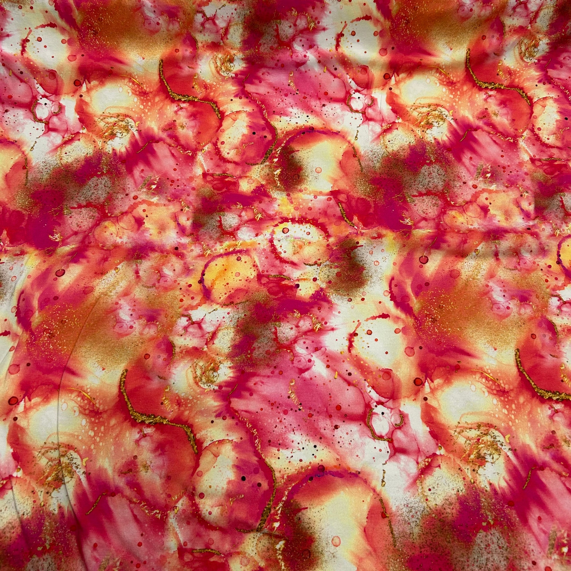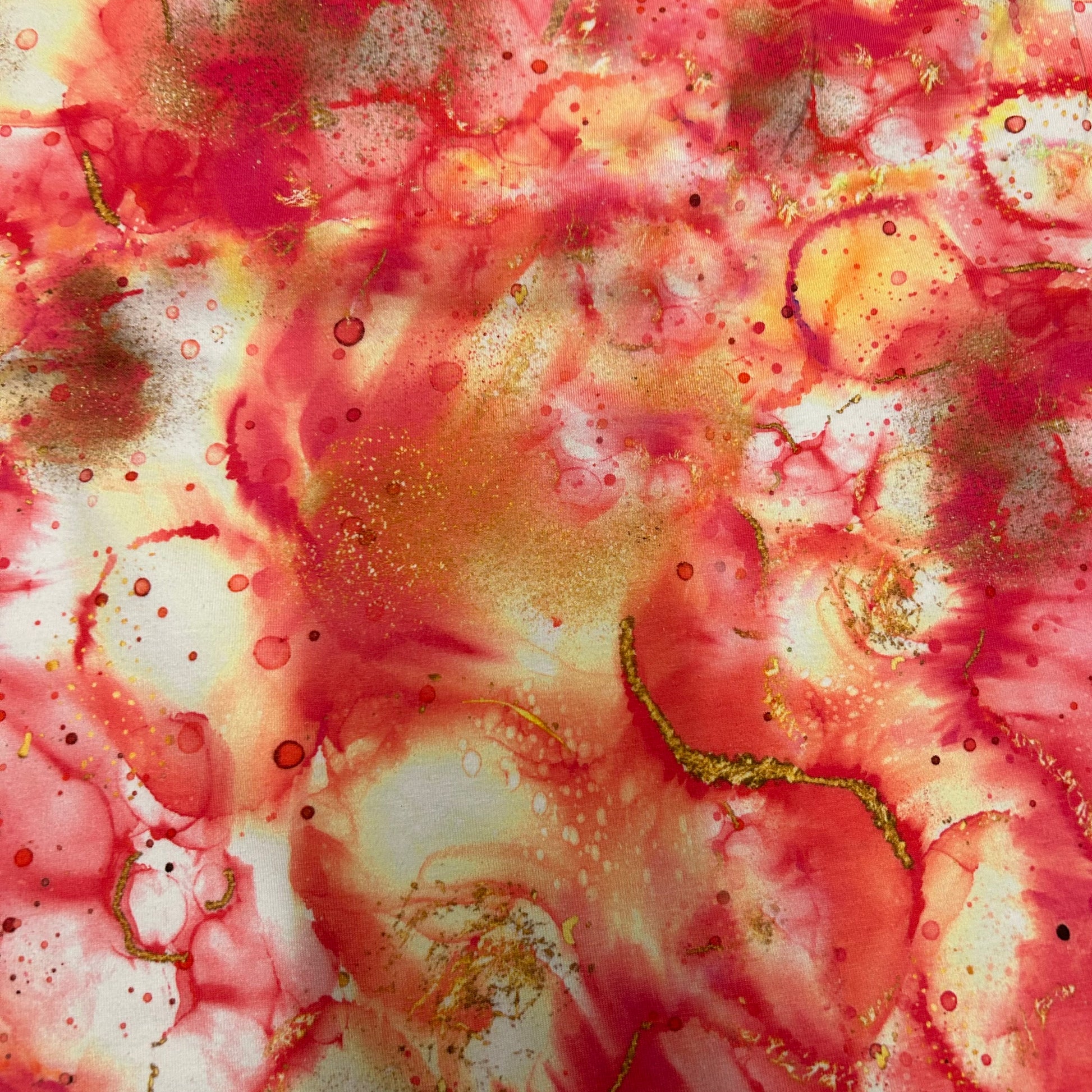 Oliemaling i lyserøde og guld farver - Bomuldsjersey