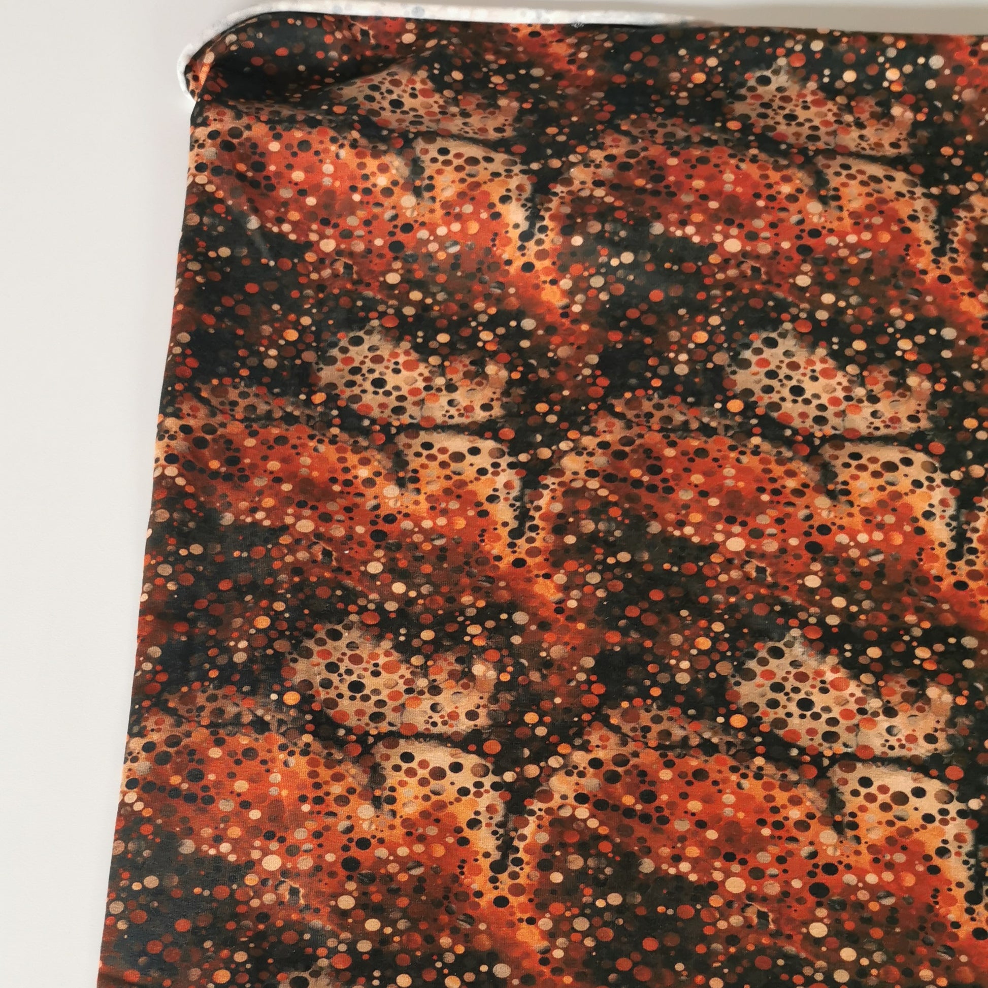 Prikker i flotte gyldne farver - Bomuldsjersey
