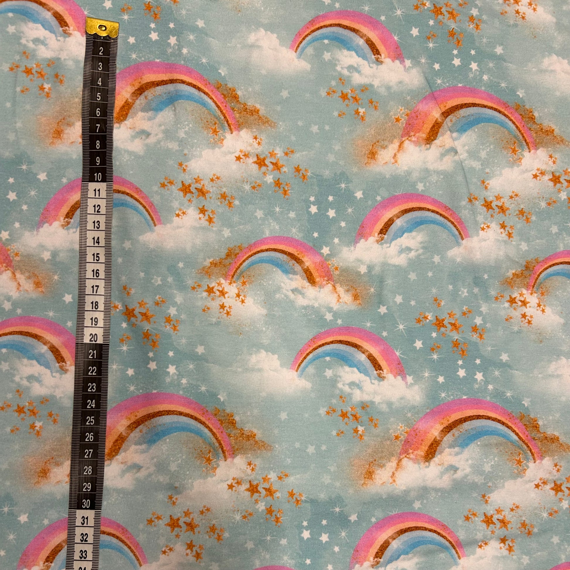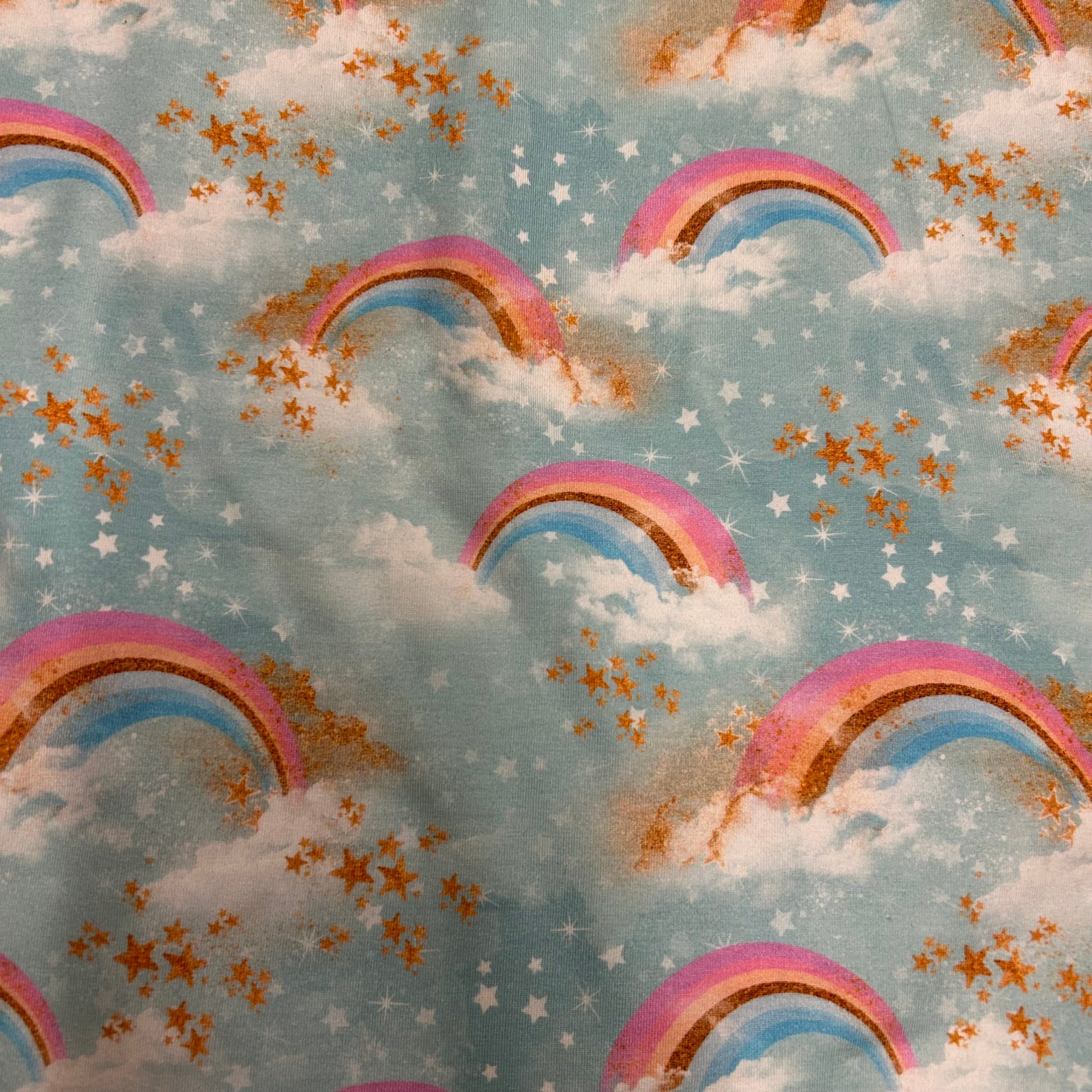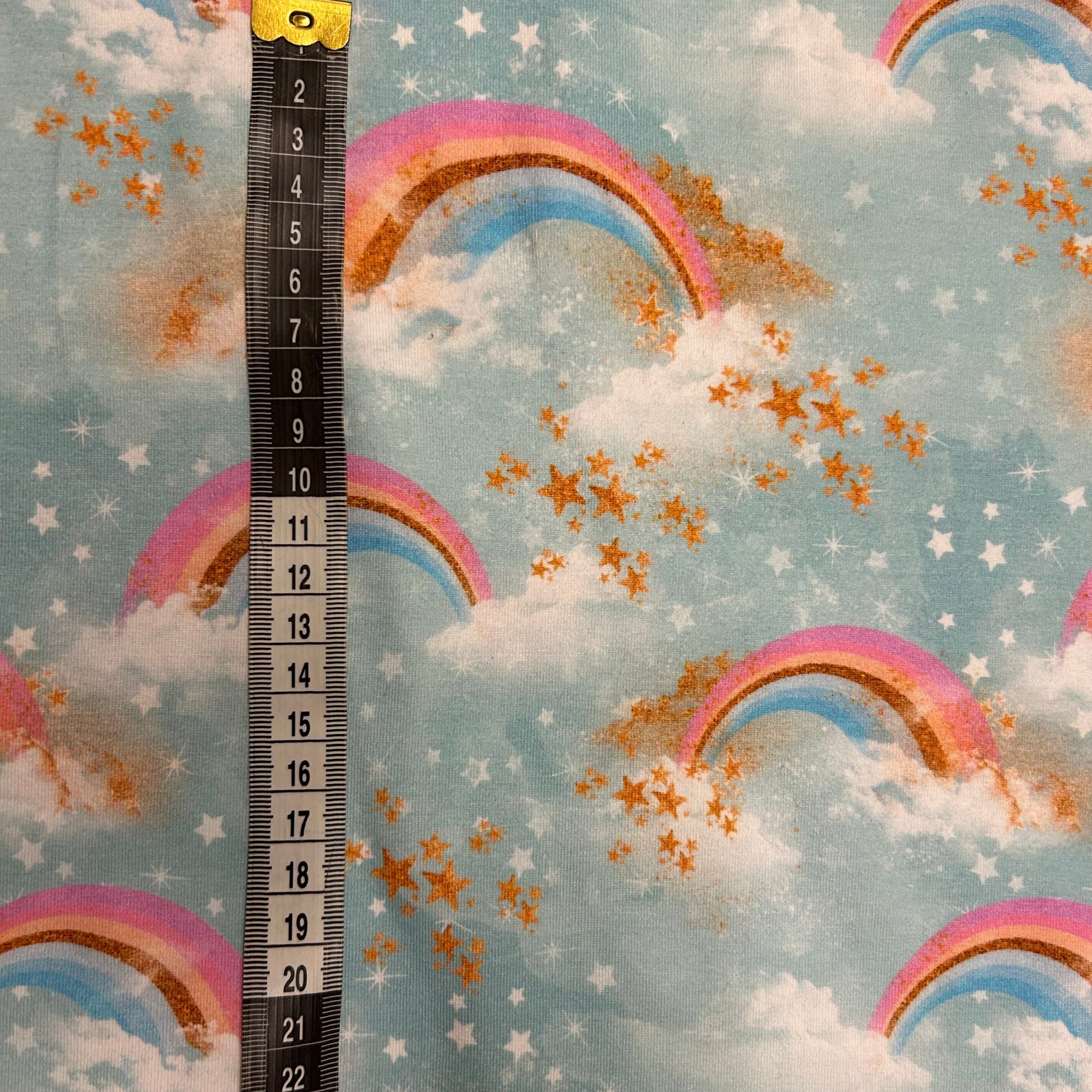 Regnbuer og skyer på blå himmel - Bomuldsjersey