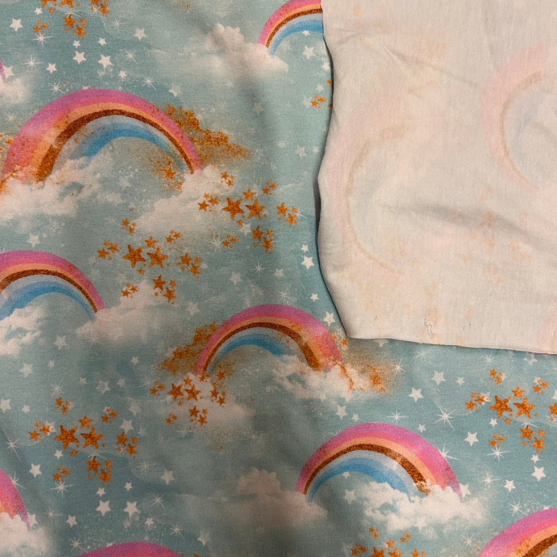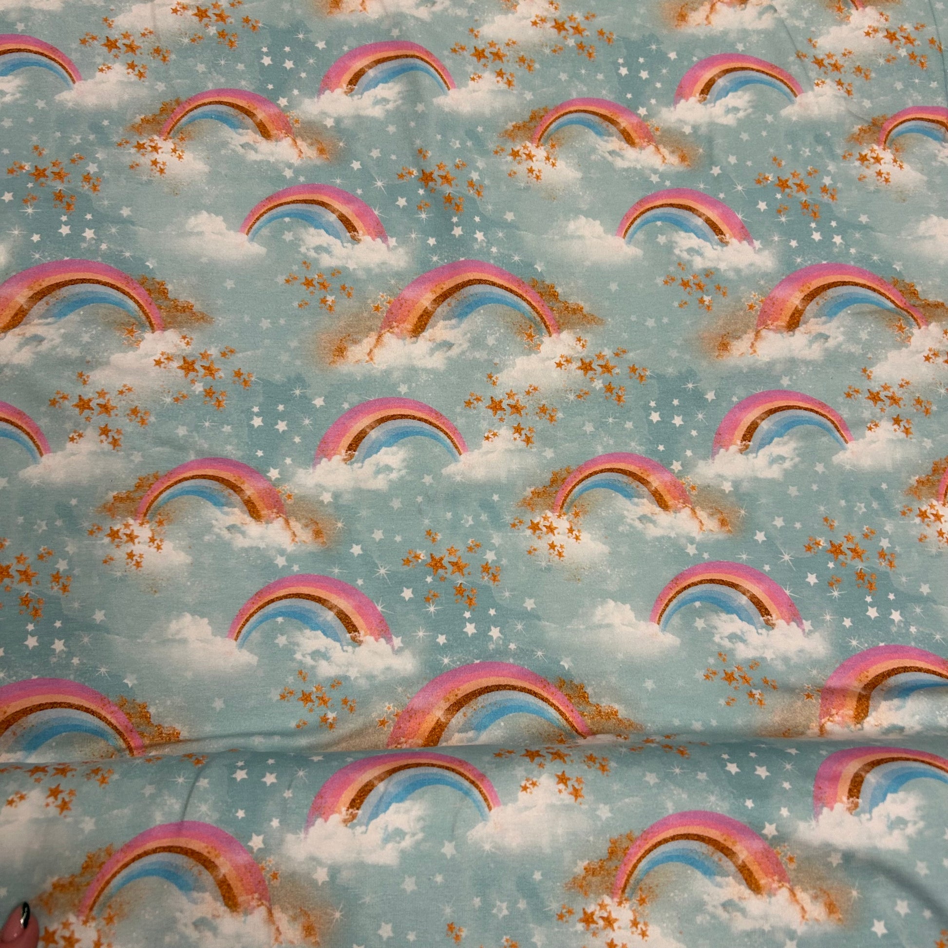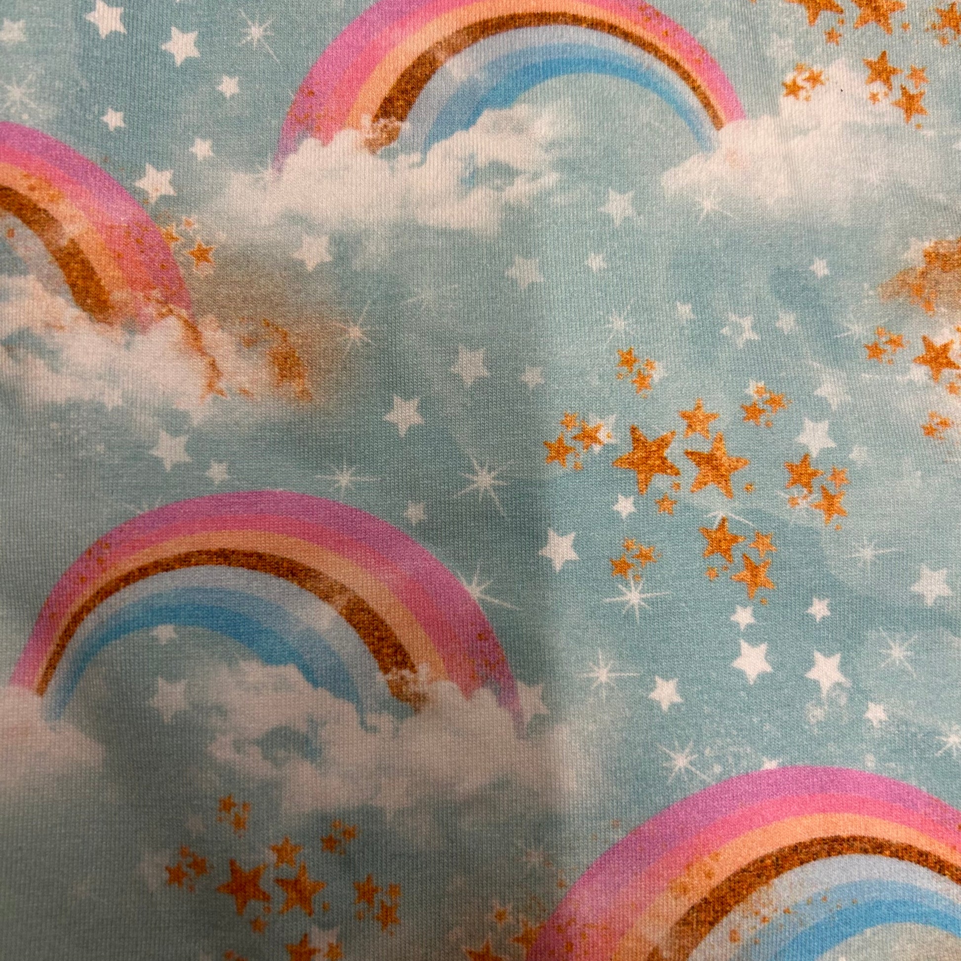 Regnbuer og skyer på blå himmel - Bomuldsjersey