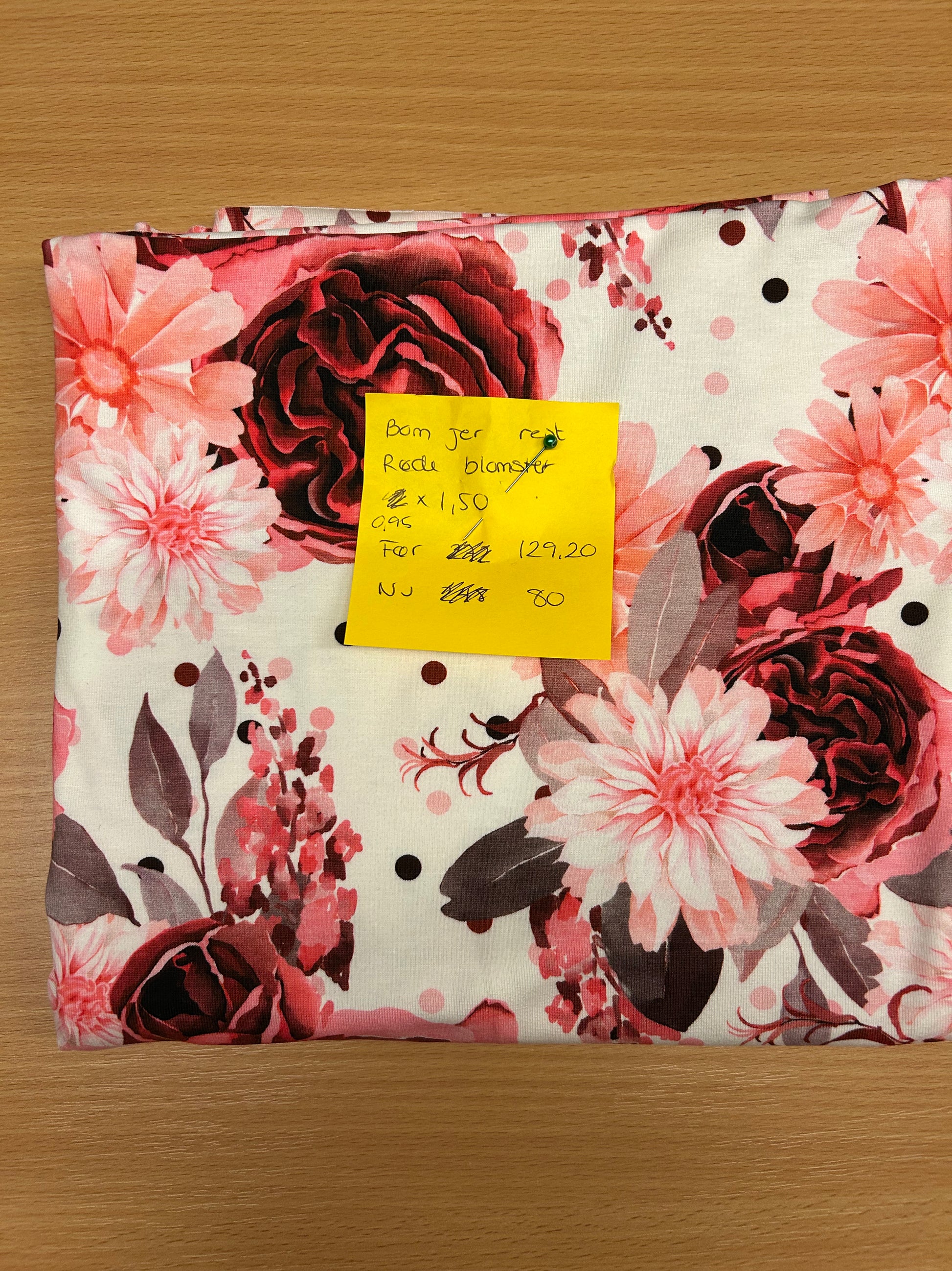 Rest - Bomuldsjersey røde blomster