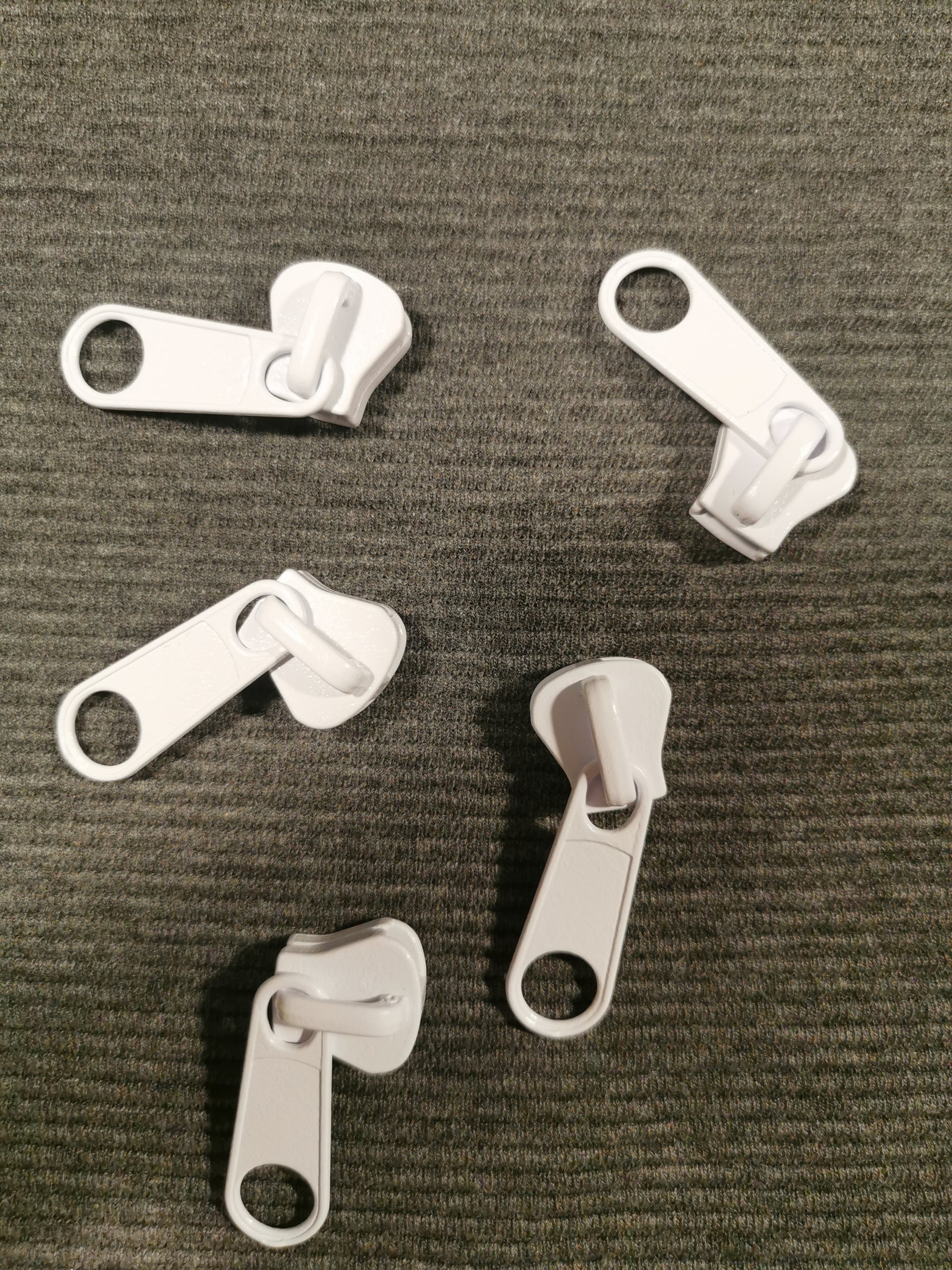 Skydere/Glidere til Lynlås i metermål 8mm Hvid