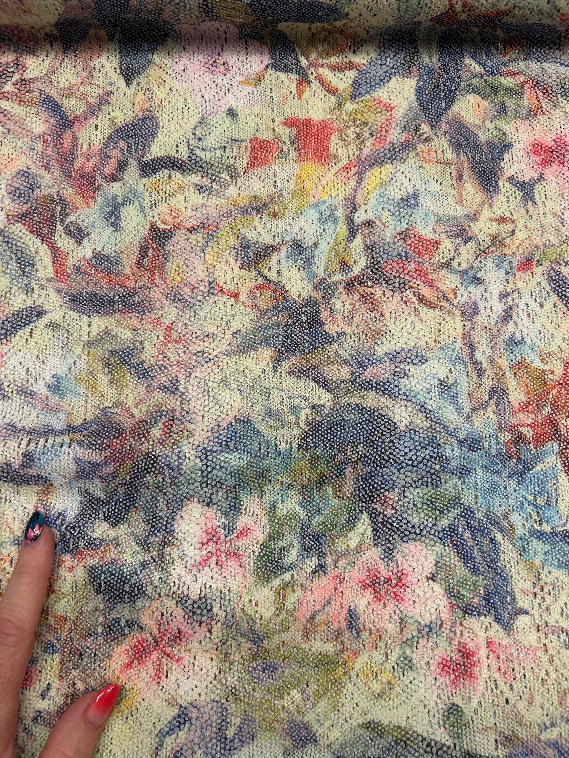 Smukt print på lys hulmønstret baggrund - Polyester med stræk